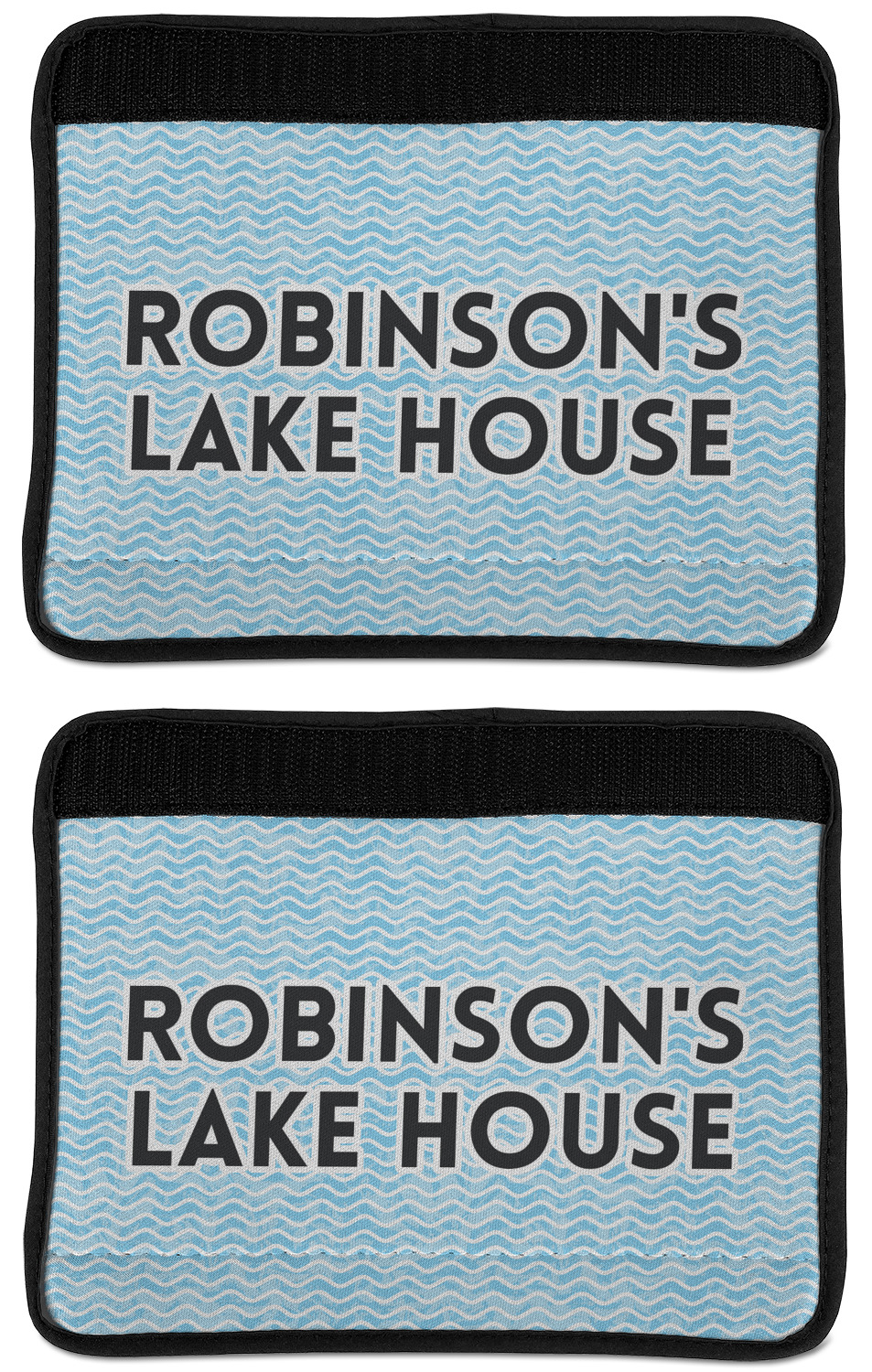 This Lake House Design is serene and calm. We create a "personalized" pattern for this design. The pattern consists of serene blue waves and a round badge that has the words Lake House in the middle. The top text & bottom texts can be customized; we chose to use the family name for the top and instead of using established in 2012, we chose to use the words "Making Memories Since 2012".