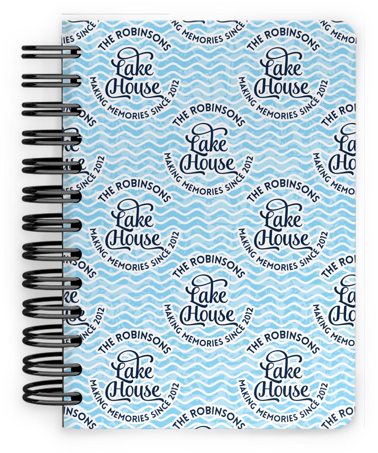 This spiral notebook includes 75 sheets of thick, ruled paper. The front and back of this custom notebook is made of a robust, laminate, plastic covering. We print your personalization on these two panels, underneath a glossy finish, which emphasizes the colors of your design. The two panels and the sheets of paper are held together by a sturdy, black coil. The paper within your bound notebook is perforated for easy, clean tearing.
