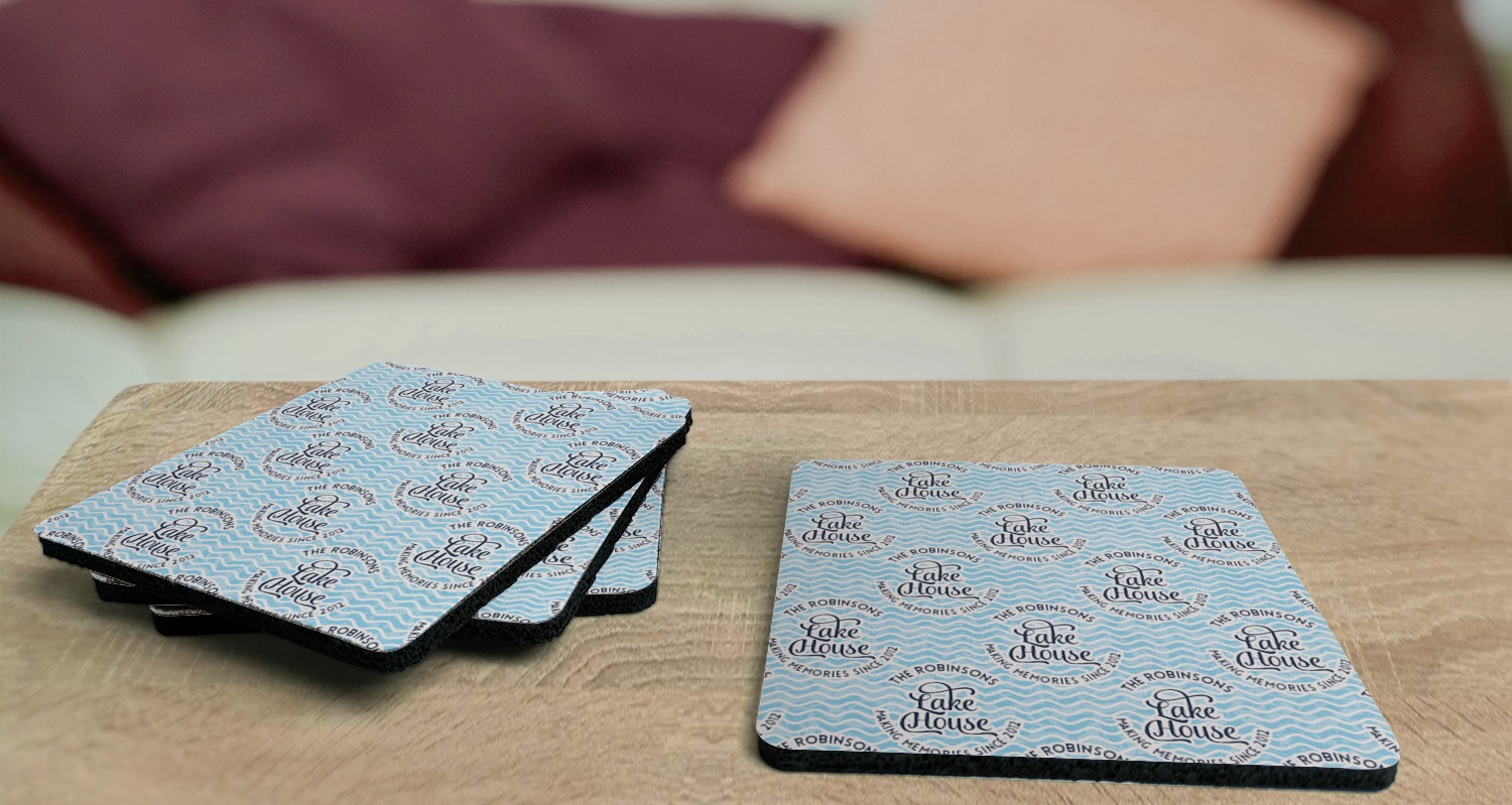 These drink coasters have a smooth, polyester top and a textured, rubber backing on its bottom. The non-slip rubber backing underneath works to keep any spills at bay. At 4 by 4 by 0.25 inches thick, these custom coasters are a suitable size for most drinkware. Your personalization is displayed atop the face of the cup coaster. We sell these rubber coasters in two different shapes: square and round. You can buy each shape as singulars or as a set of 4.
