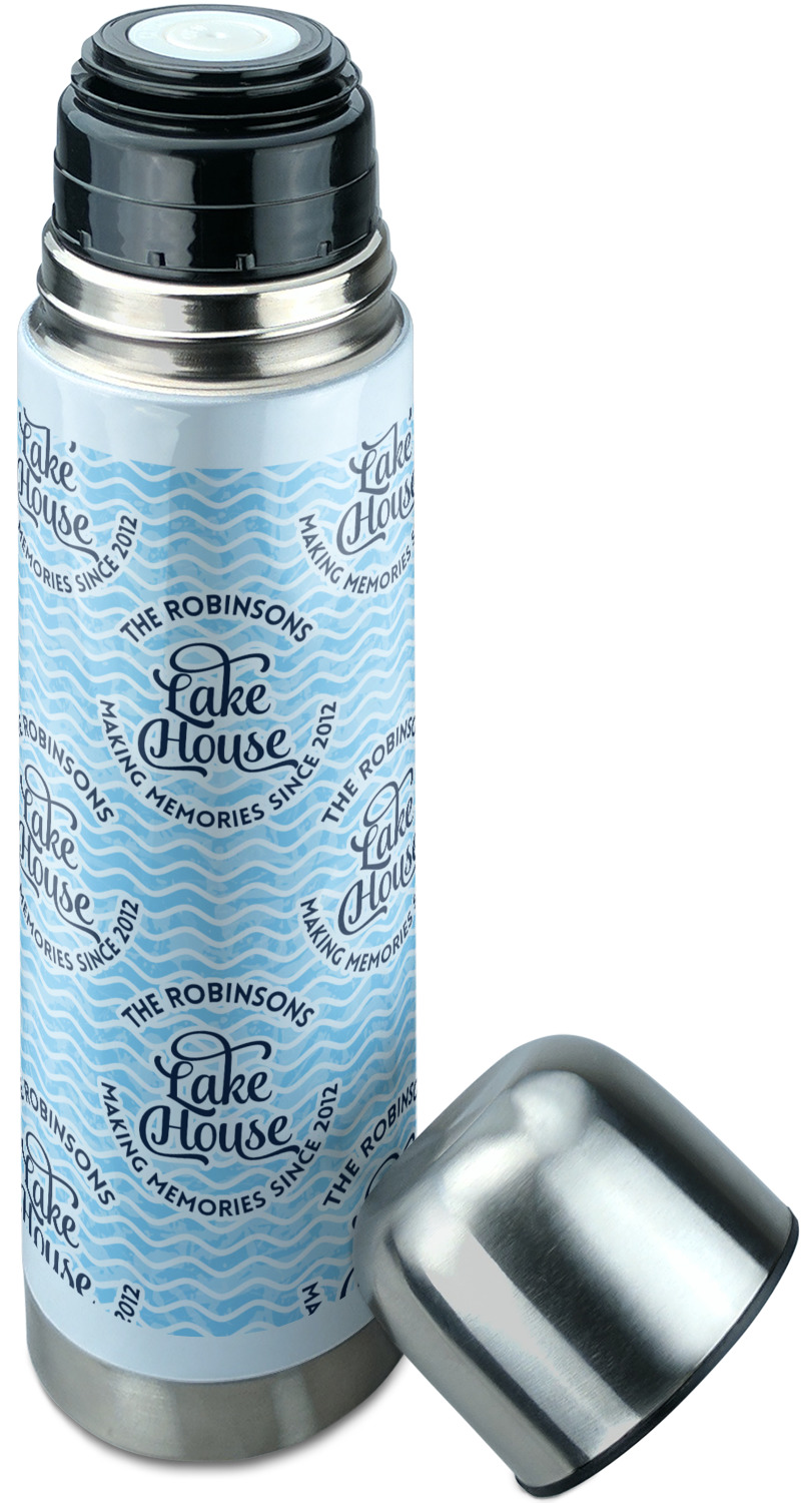 Manufactured from stainless steel, this thermos is built durably and double-walled insulated to preserve the temperature of your drink for hours. It also features a screw off lid that is made to also function as a small cup. Upon unscrewing this part of the thermos bottle, a pop-open, pour feature emerges. This feature allows you to slowly pour your beverage into your lid, ensuring a steady, controlled pour into your lid or other cup. With a capacity of 25 ounces, these large thermoses can hold several servings of your favorite beverage. Your customization is displayed all around the bottle with bright, vibrant color.