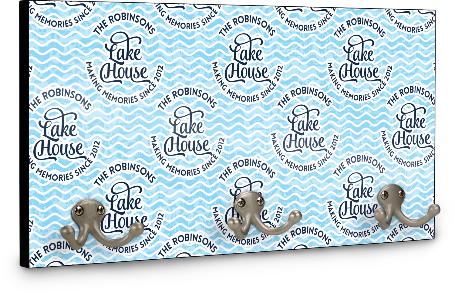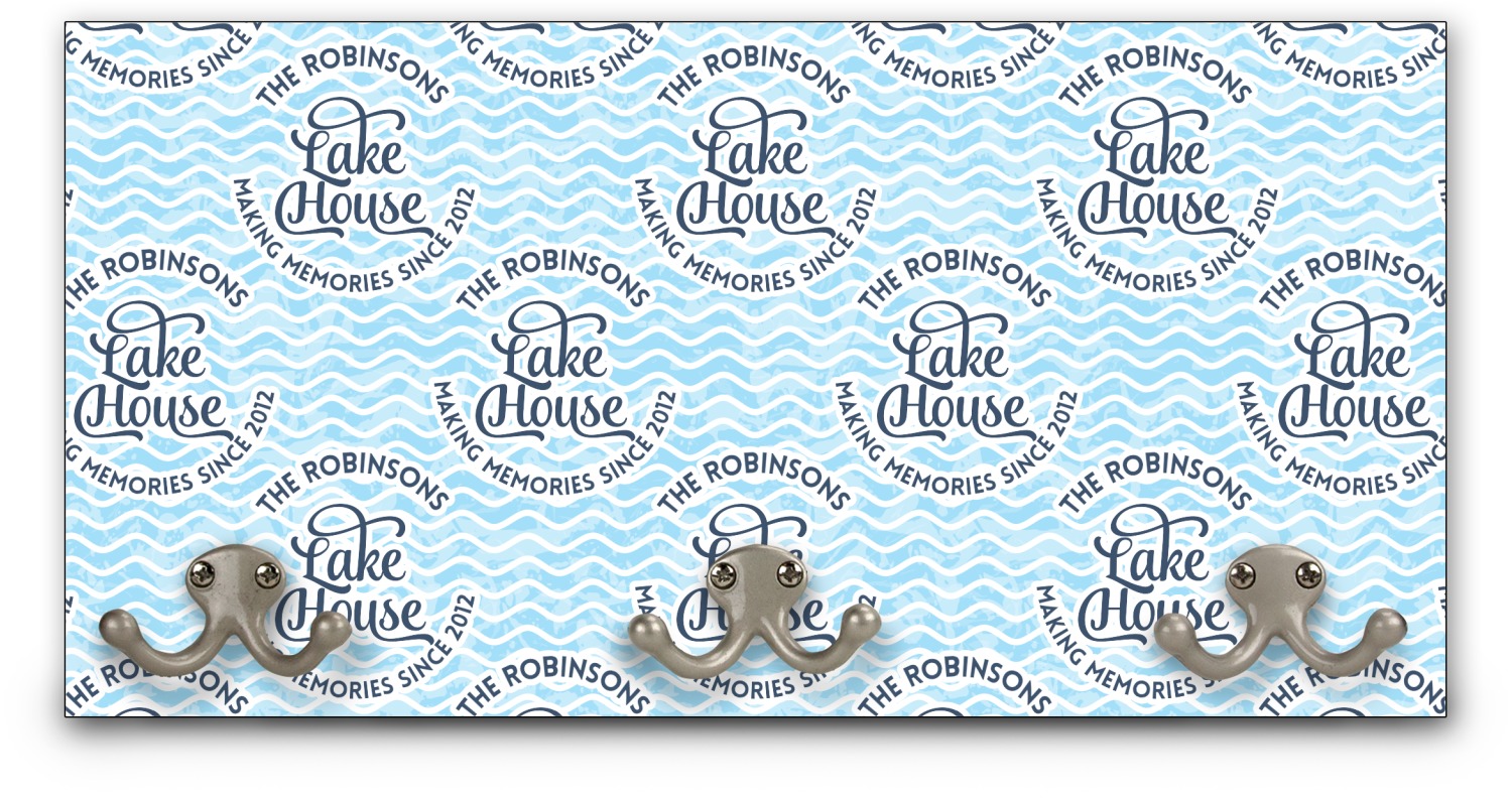 This Lake House Design is serene and calm. We create a "personalized" pattern for this design. The pattern consists of serene blue waves and a round badge that has the words Lake House in the middle. The top text & bottom texts can be customized; we chose to use the family name for the top and instead of using established in 2012, we chose to use the words "Making Memories Since 2012".