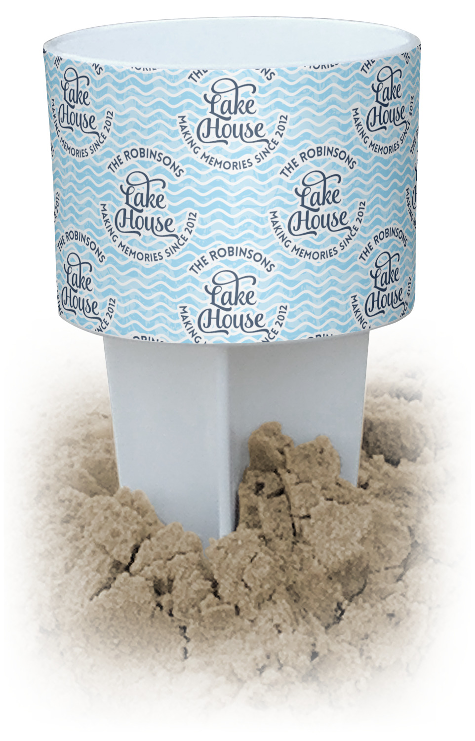 This cup holder has a large stake at its bottom that anchors it to the sand or ground below, while the cup holder rests above the stake. The entire drink holder is made of durable plastic and displays your customization around the cup holder portion. We sell these personalized beach spikers in two different colors: black and white.