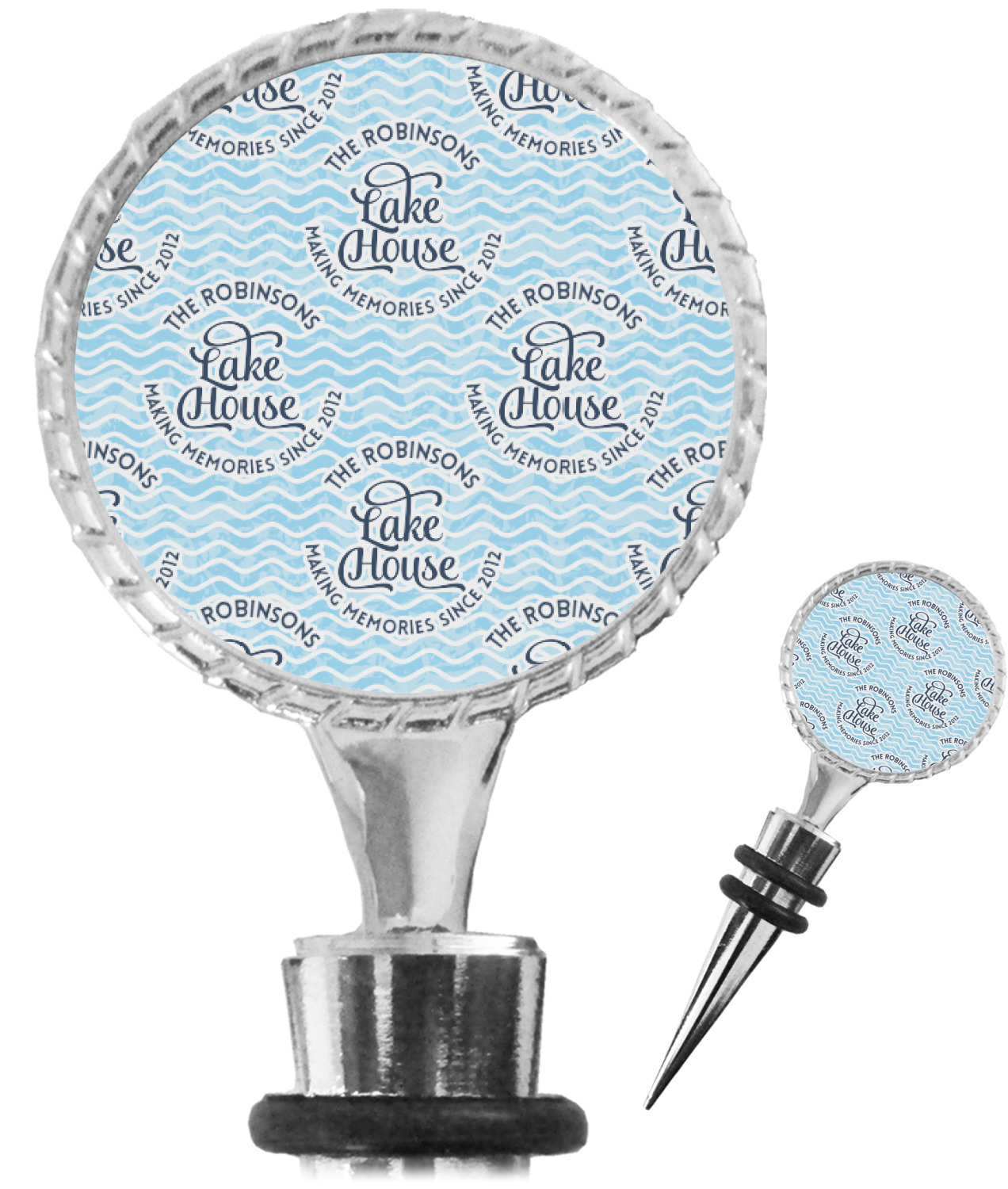 The top part of your bottle stopper is comprised of a zinc ring that displays your customization(s) in its middle, on both sides. The ring is heavy duty, with a bright chrome finish. The body of the wine stoppers have two silicone rings to provide an airtight seal. These wine bottle stoppers measure at 1.625" L x 0.8125" W x 4.625" H; your custom wine stopper is meant to fit into most standard-sized wine bottles.