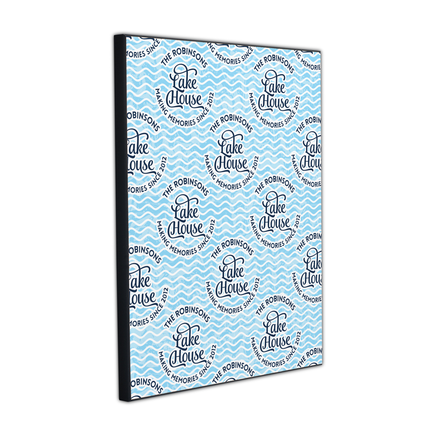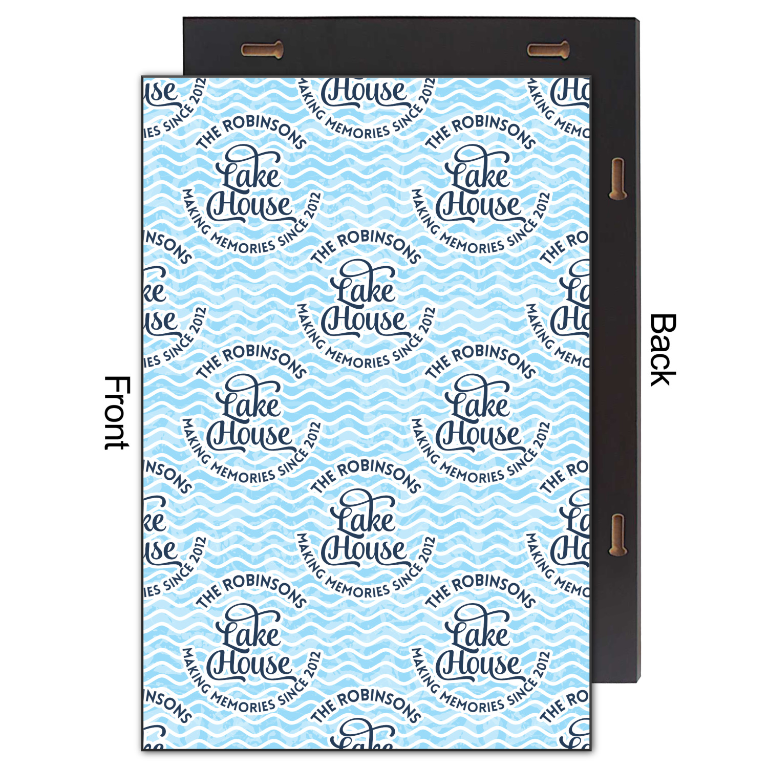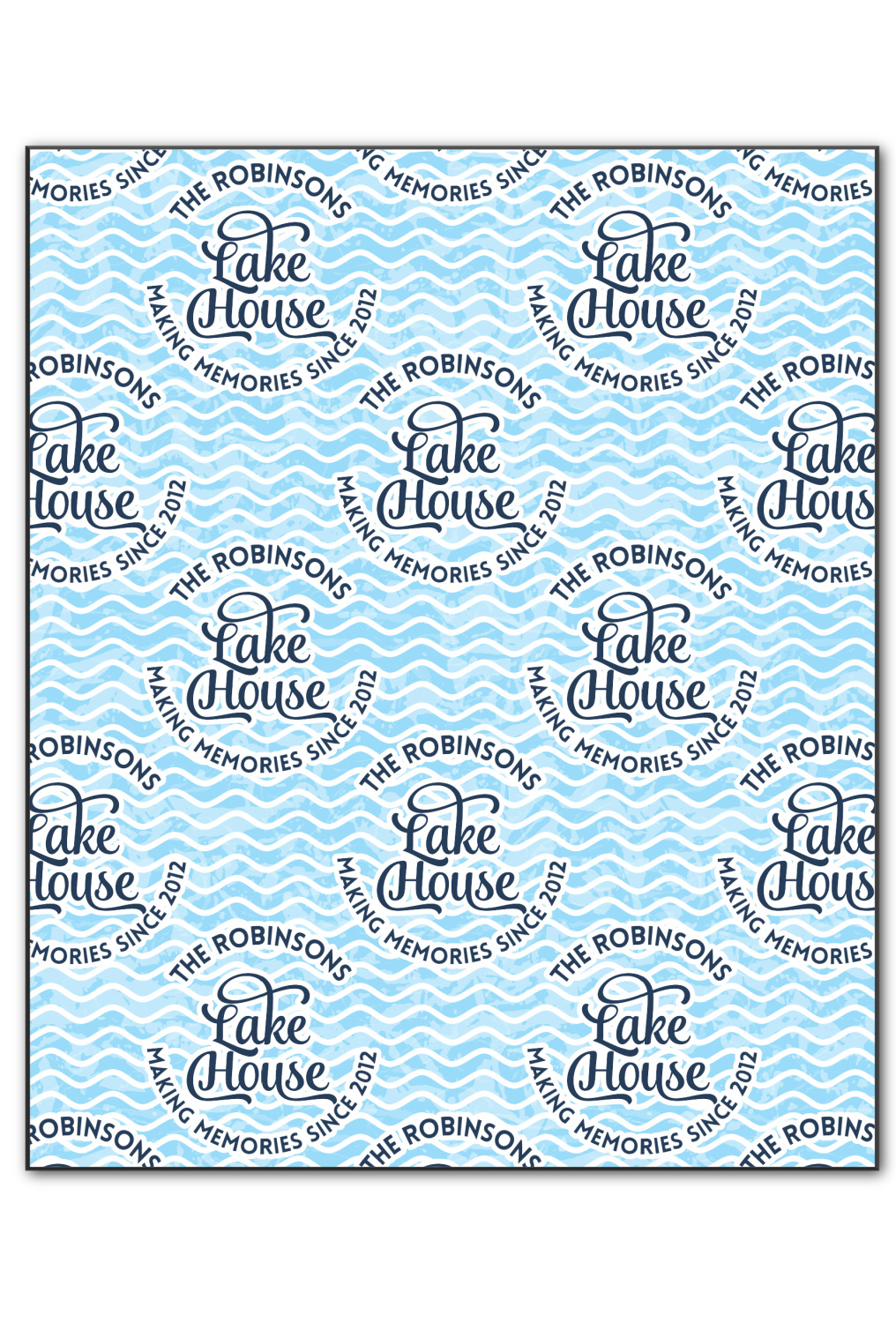 This Lake House Design is serene and calm. We create a "personalized" pattern for this design. The pattern consists of serene blue waves and a round badge that has the words Lake House in the middle. The top text & bottom texts can be customized; we chose to use the family name for the top and instead of using established in 2012, we chose to use the words "Making Memories Since 2012".
