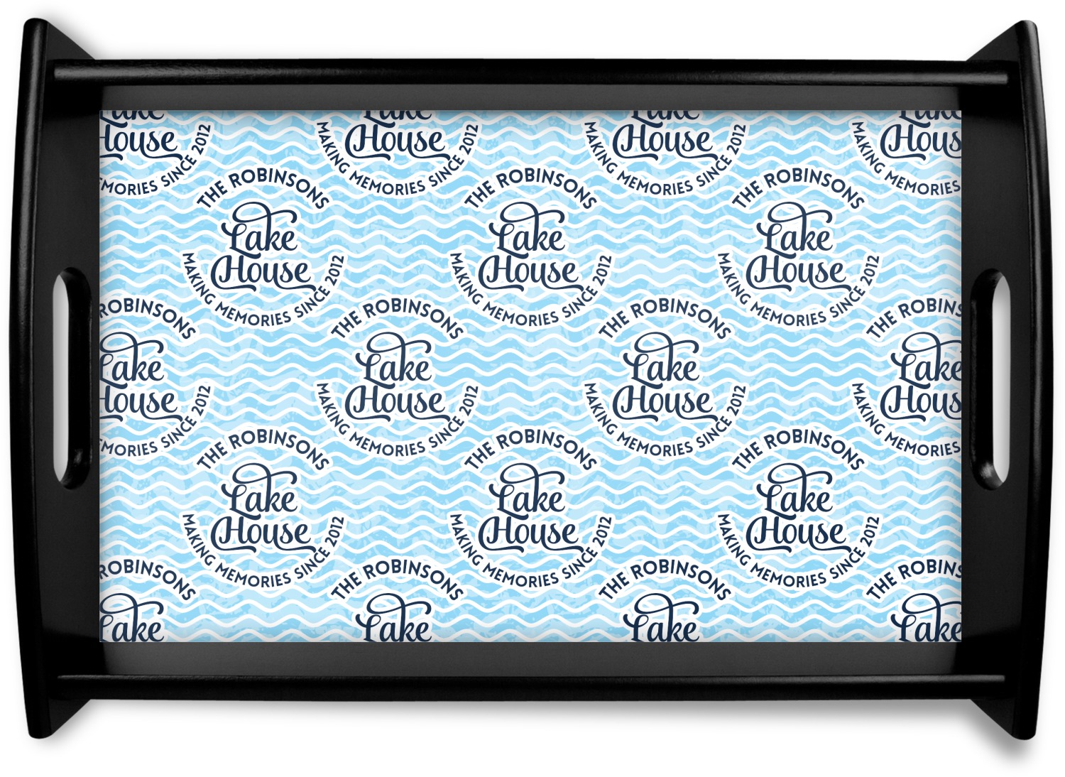 This Lake House Design is serene and calm. We create a "personalized" pattern for this design. The pattern consists of serene blue waves and a round badge that has the words Lake House in the middle. The top text & bottom texts can be customized; we chose to use the family name for the top and instead of using established in 2012, we chose to use the words "Making Memories Since 2012".