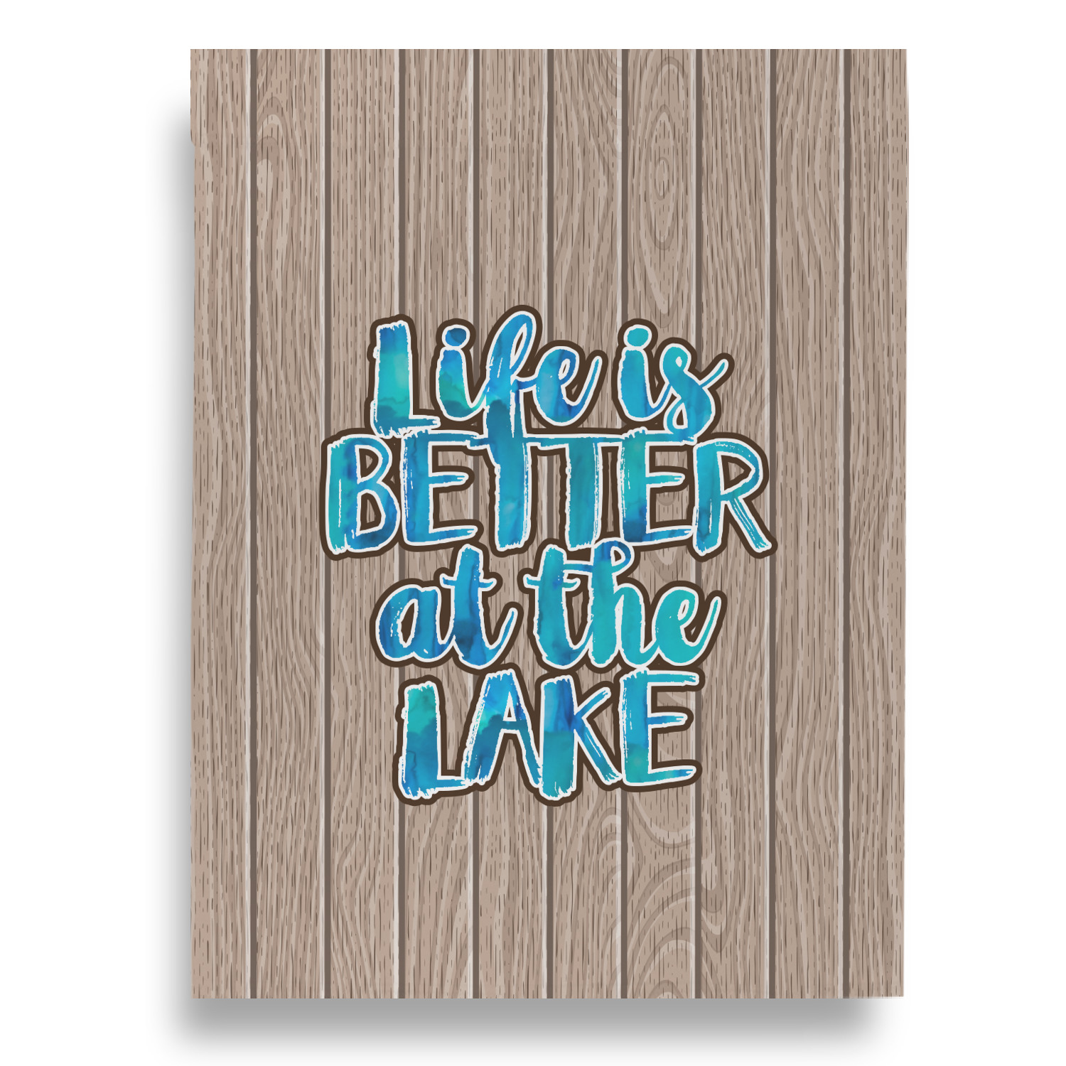 For our coordinating designs, we used the wooden planks with water color filled words on them i.e. "Life is Better at the Lake" and "Better to Wake at the Lake". We think it turned out to be an elegant design that would nicely complement the decor of a lake house.