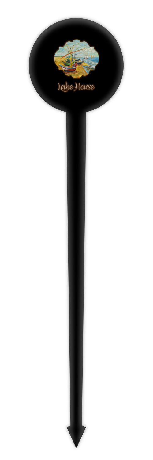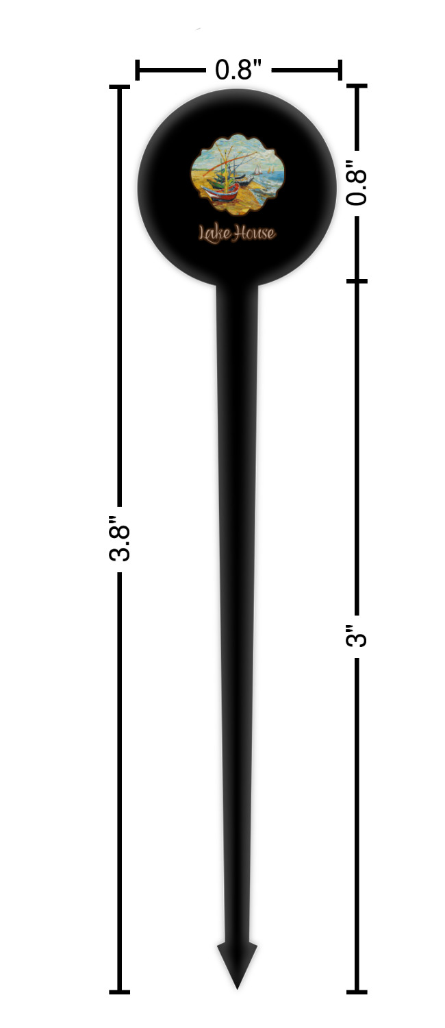 Coastal / Beach Style Designs for 4" Round Plastic Food Picks - Black - Double-Sided