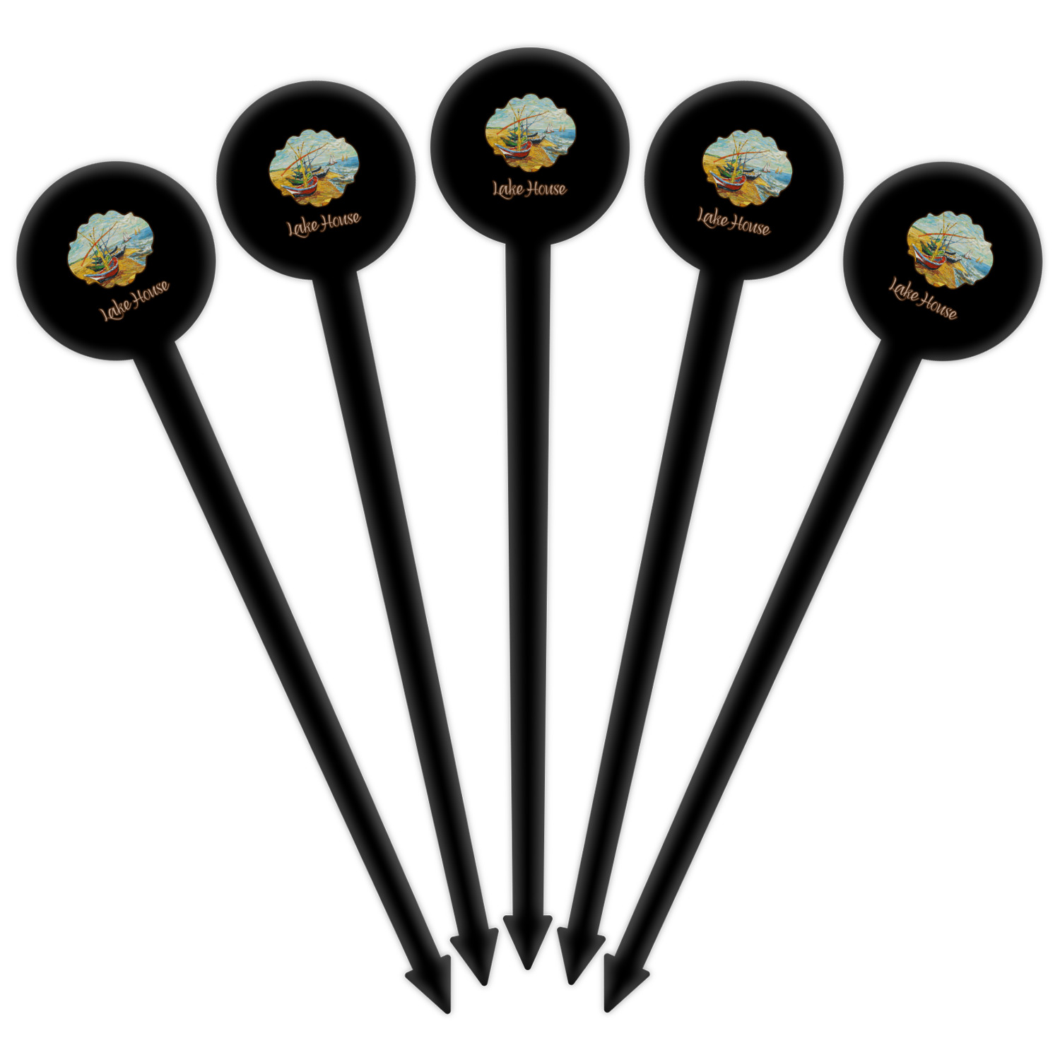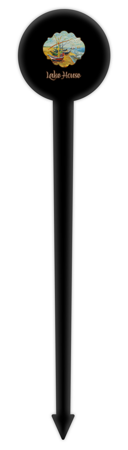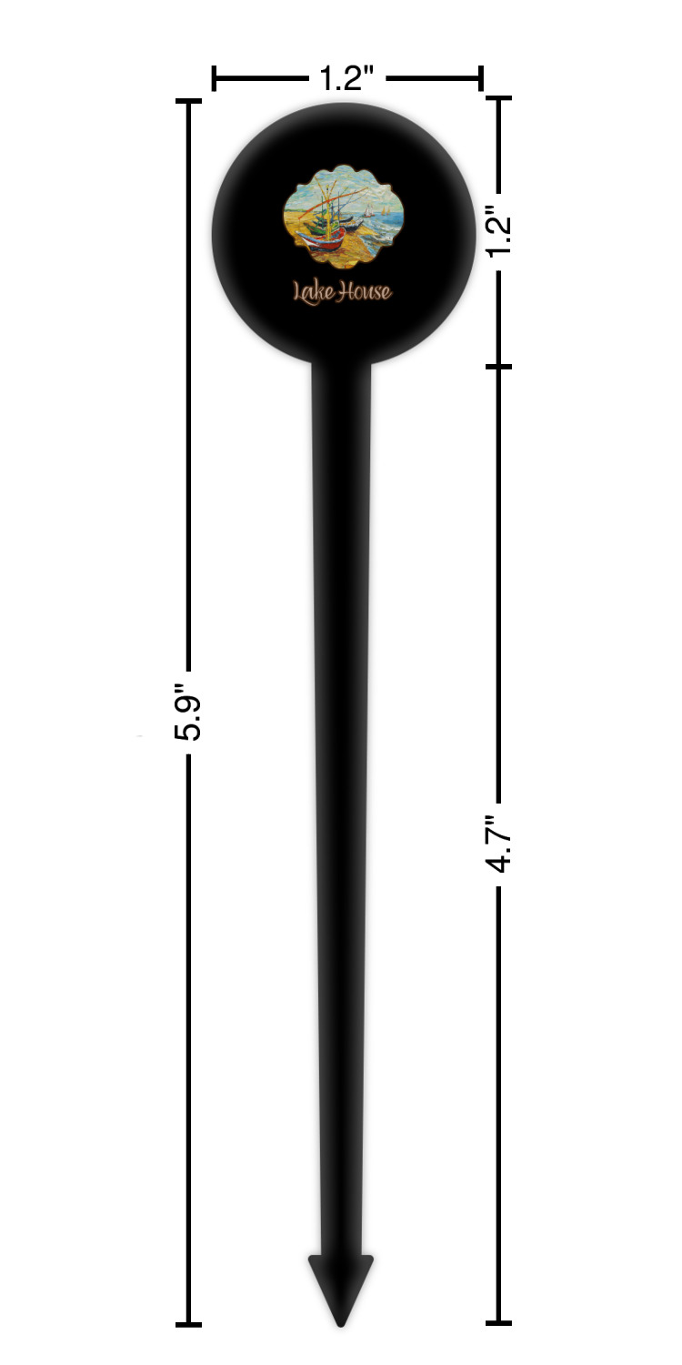 Coastal / Beach Style Designs for 6" Round Plastic Food Picks - Black - Double-Sided