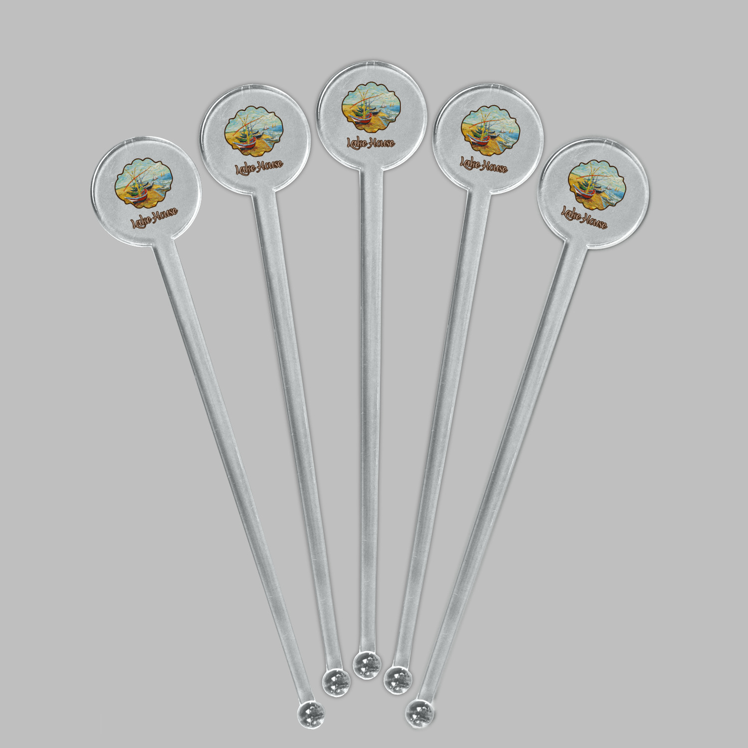 Coastal / Beach Style Designs for 7" Round Plastic Stir Sticks - Clear