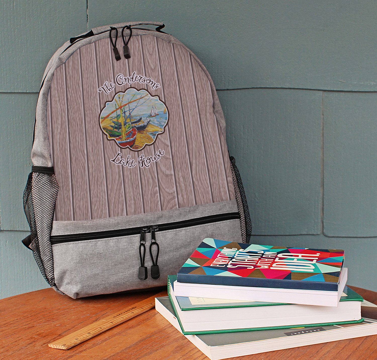 Our Lake House design is a combination of classic and chic elements. For our classic element we used Fishing Boats on the Beach by Claude Monet for our center graphic; and for our chic element we used our wooden planks pattern for the background. We choose a neutral sand color for our planks - they can be any color!