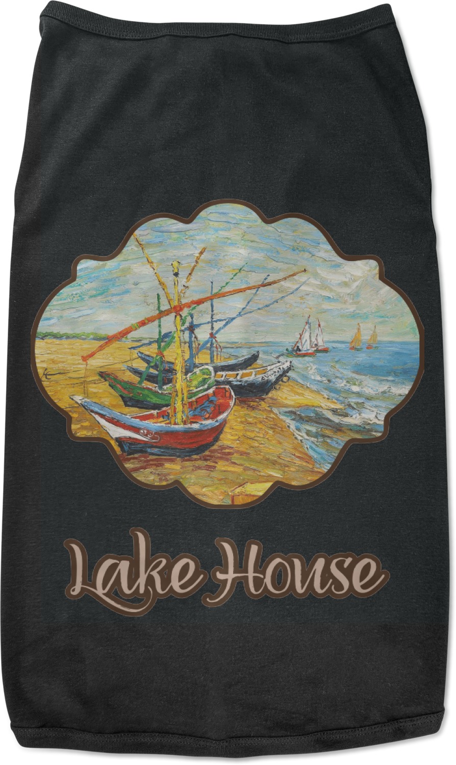 Our Lake House design is a combination of classic and chic elements. For our classic element we used Fishing Boats on the Beach by Claude Monet for our center graphic; and for our chic element we used our wooden planks pattern for the background. We choose a neutral sand color for our planks - they can be any color!