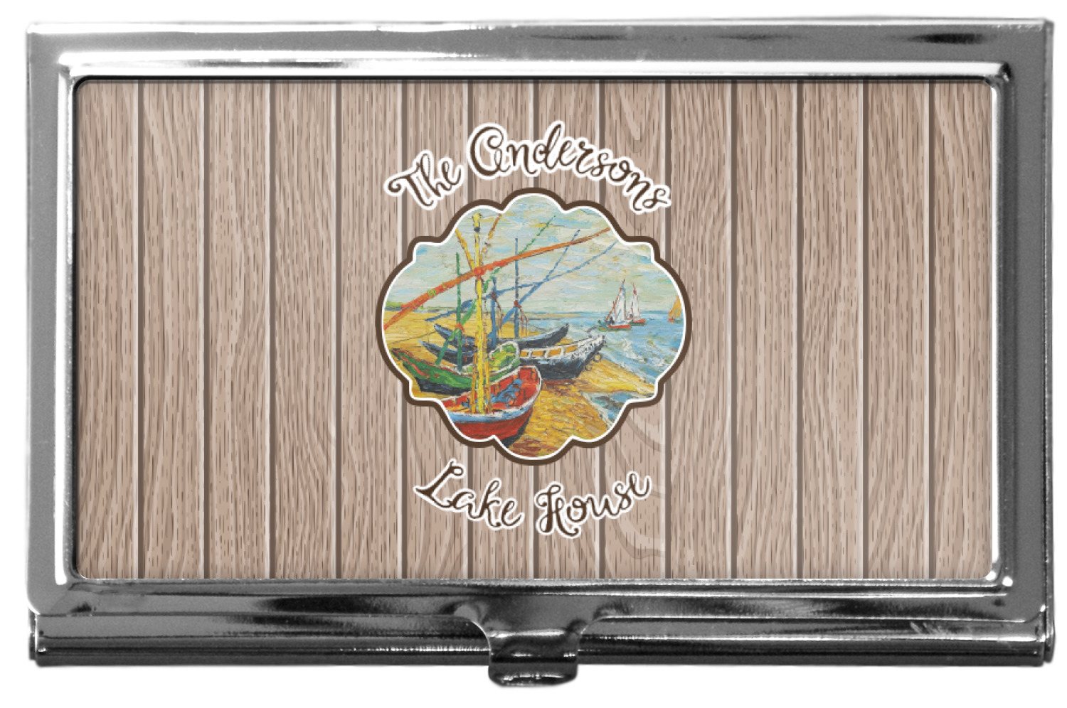 Our Lake House design is a combination of classic and chic elements. For our classic element we used Fishing Boats on the Beach by Claude Monet for our center graphic; and for our chic element we used our wooden planks pattern for the background. We choose a neutral sand color for our planks - they can be any color!