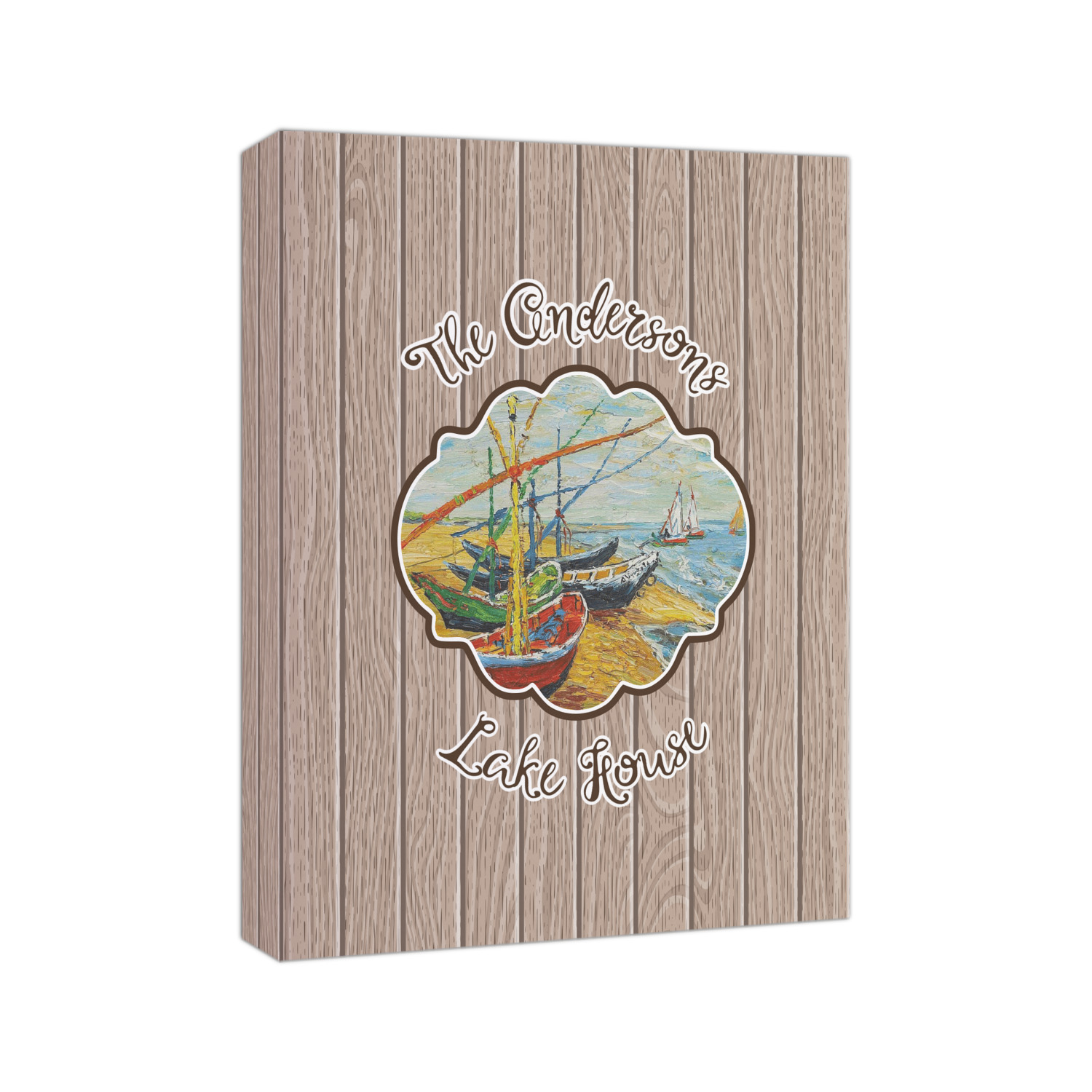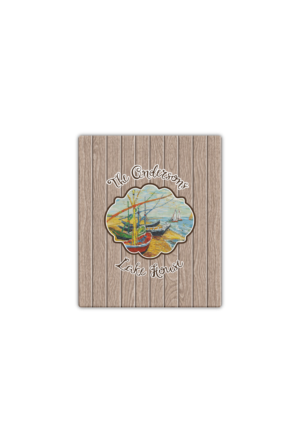 Our Lake House design is a combination of classic and chic elements. For our classic element we used Fishing Boats on the Beach by Claude Monet for our center graphic; and for our chic element we used our wooden planks pattern for the background. We choose a neutral sand color for our planks - they can be any color!
