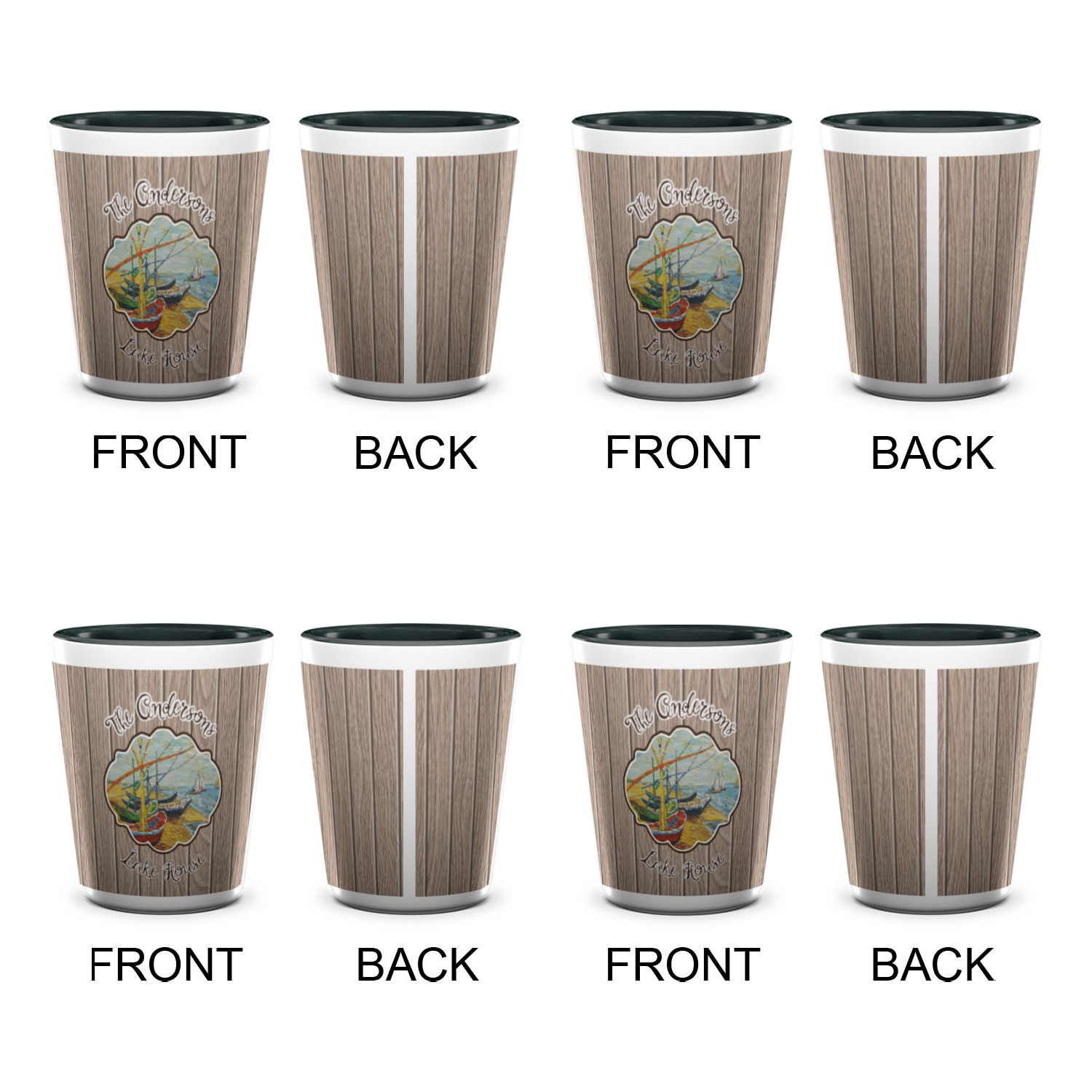 Made from ceramic these shot glasses are printed in full color with the design of your choice. These are a standard 1.5oz size and stand 2.25" tall. Available in a full white ceramic or a two-tone with a black color inside the shot glass. Buy a single or a set of 4, all of which can be designed separately to get you just what you want and need.