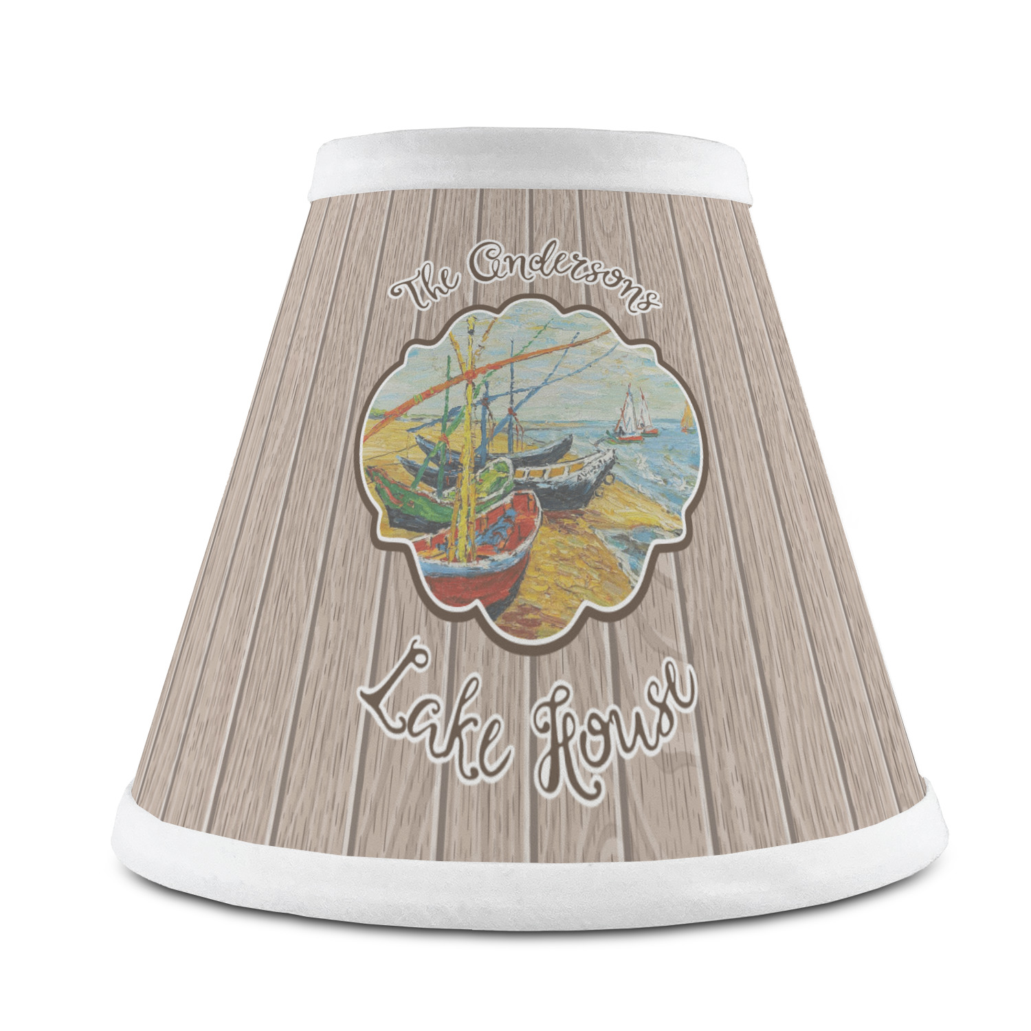 Our Lake House design is a combination of classic and chic elements. For our classic element we used Fishing Boats on the Beach by Claude Monet for our center graphic; and for our chic element we used our wooden planks pattern for the background. We choose a neutral sand color for our planks - they can be any color!
