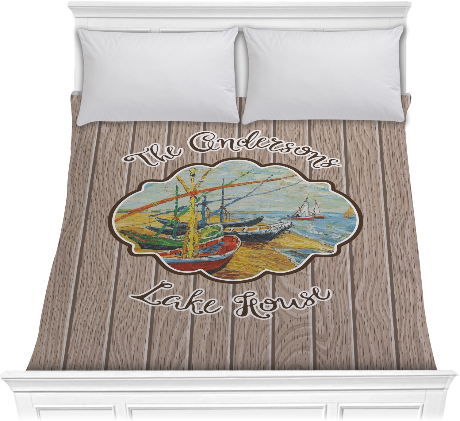 Our Lake House design is a combination of classic and chic elements. For our classic element we used Fishing Boats on the Beach by Claude Monet for our center graphic; and for our chic element we used our wooden planks pattern for the background. We choose a neutral sand color for our planks - they can be any color!