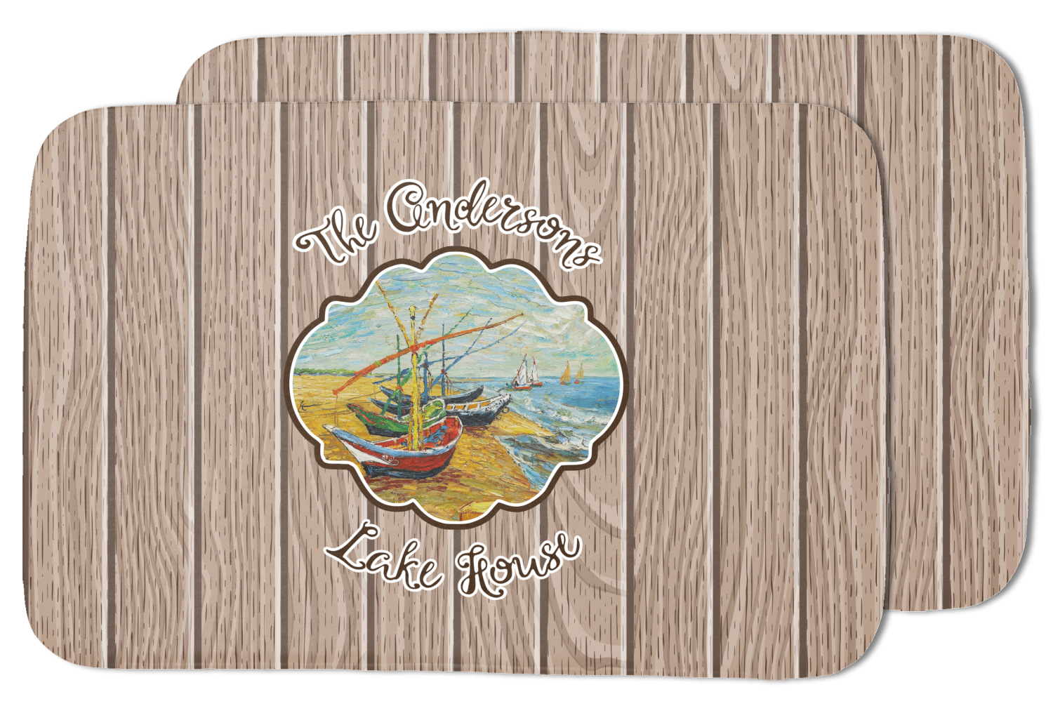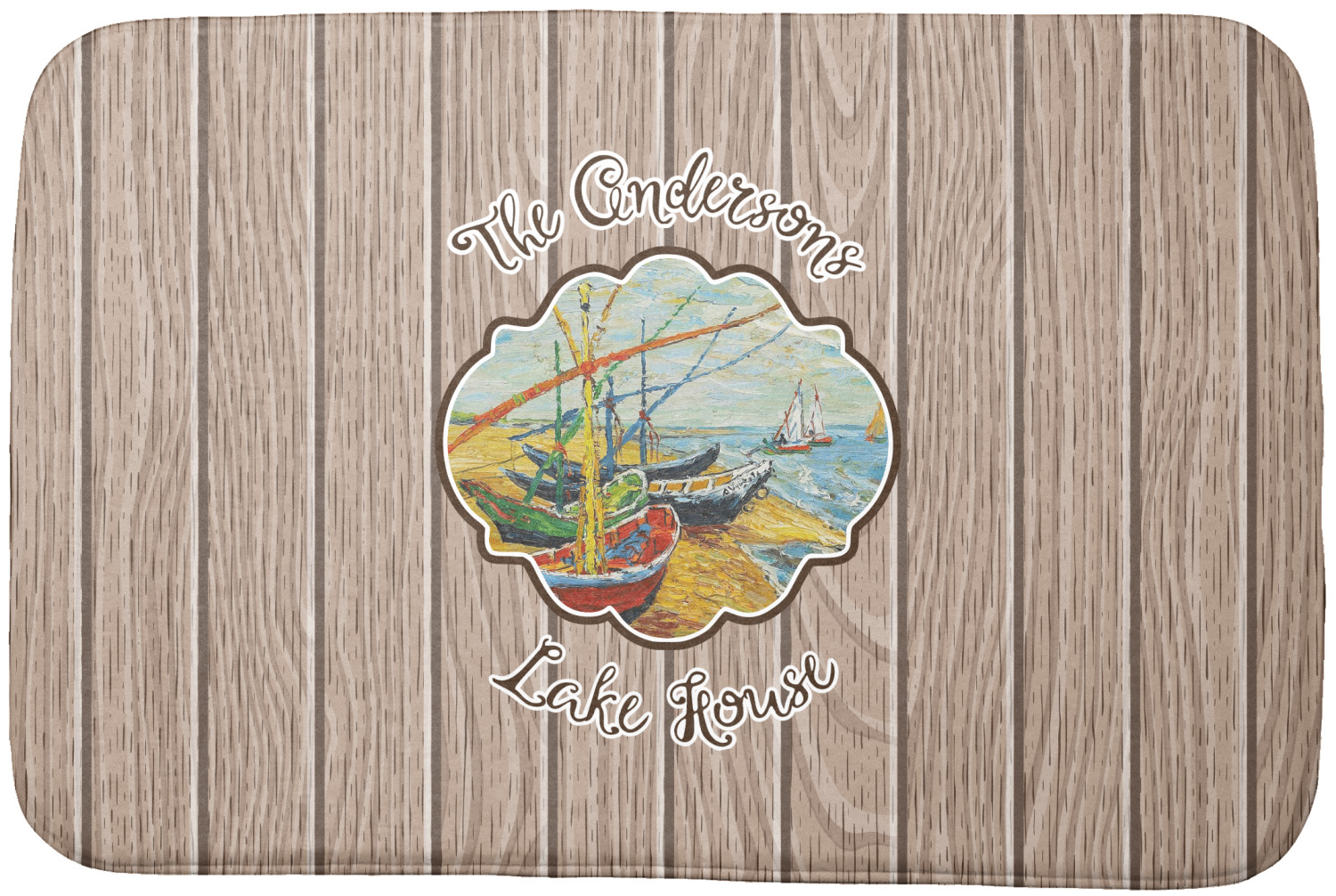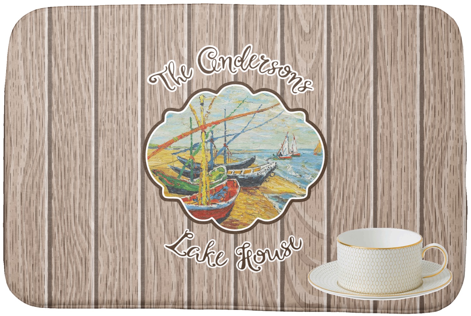 Our Lake House design is a combination of classic and chic elements. For our classic element we used Fishing Boats on the Beach by Claude Monet for our center graphic; and for our chic element we used our wooden planks pattern for the background. We choose a neutral sand color for our planks - they can be any color!