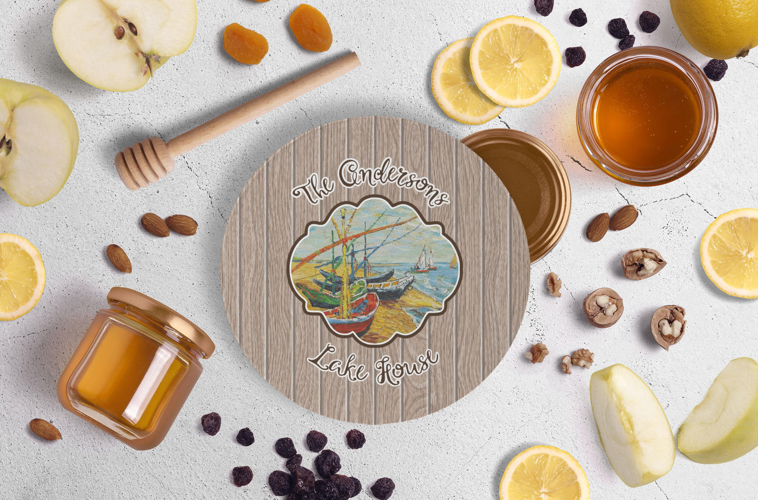 Our Lake House design is a combination of classic and chic elements. For our classic element we used Fishing Boats on the Beach by Claude Monet for our center graphic; and for our chic element we used our wooden planks pattern for the background. We choose a neutral sand color for our planks - they can be any color!