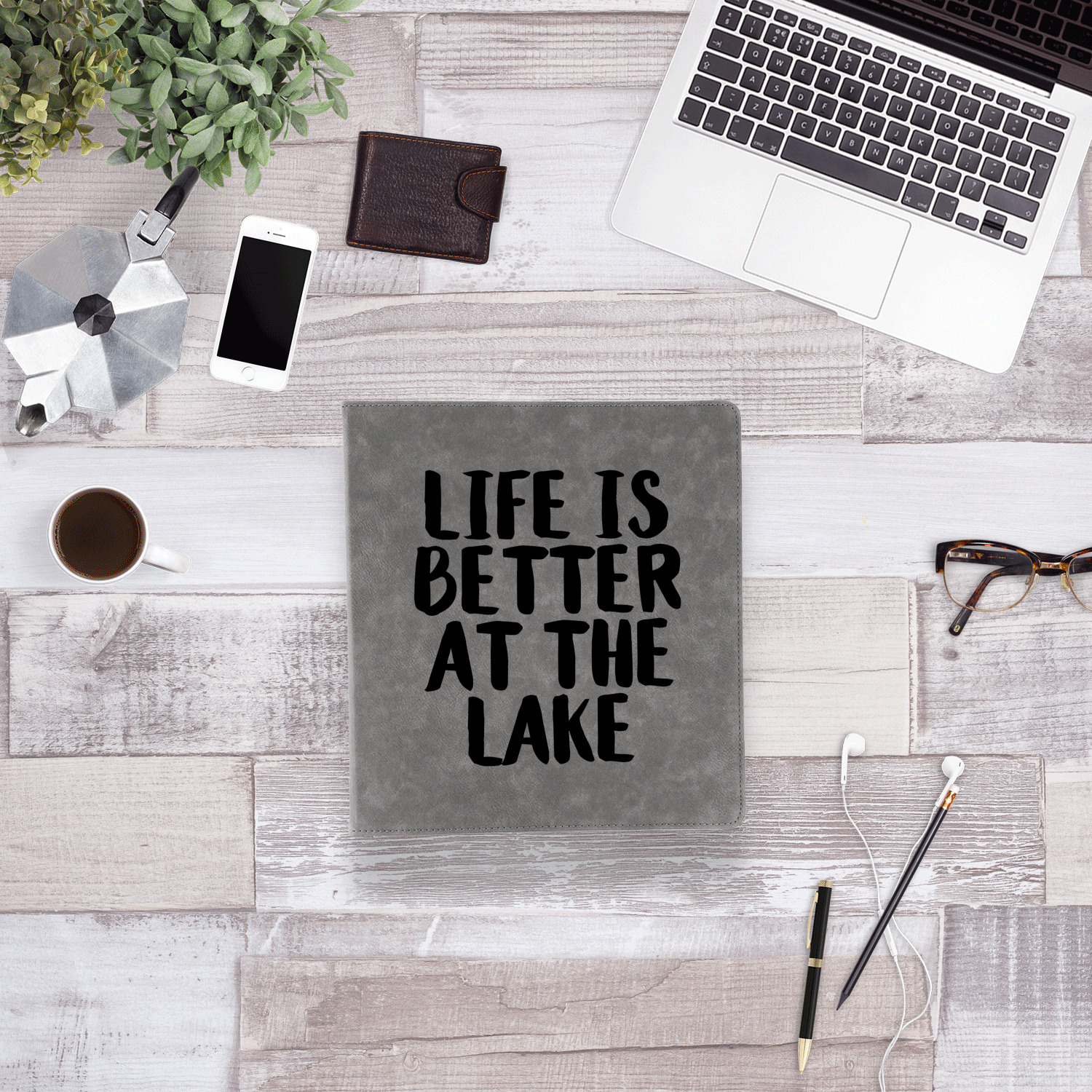 For our coordinating designs, we used the wooden planks with water color filled words on them i.e. "Life is Better at the Lake" and "Better to Wake at the Lake". We think it turned out to be an elegant design that would nicely complement the decor of a lake house.