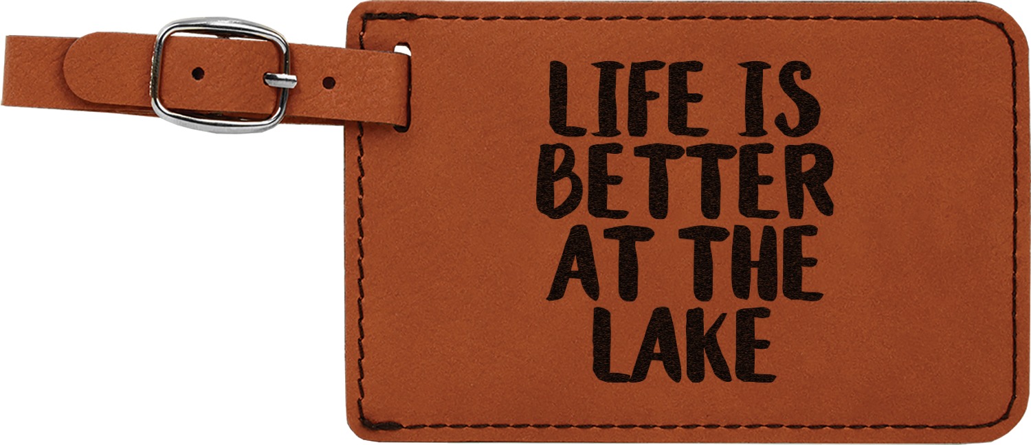 This luggage tag will surely be able to get you started in having all the right tools for traveling. It is made of a beautiful leatherette material that is a nice shade of cognac brown. The front of the tag is where your design goes. The sturdy black stitching gives your design an extra pop and gives the tag extra durability. The back of the tag has a clear vinyl window where you can slip in your address card. The tag comes with a great little buckle strap that you can easily use to clip to your suitcase. The tag itself measures at approximately 5.5"W x 4.25"H.