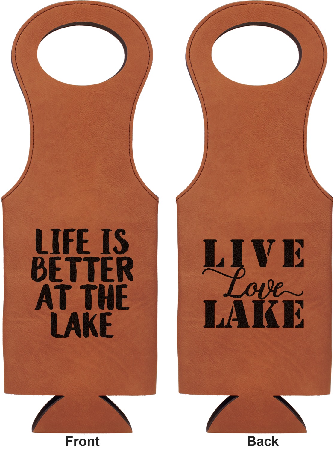 This wine carrier is made from a stunning leatherette, in a cognac-brown color. Strong, black stitching lines the sides of your wine bottle bag and provides extra durability. The interior is lined with a padded, black material to allow for a snug fit once your bottle is placed inside. At the top of this wine gift bag, you'll find two oval shaped handles that elegantly complements the rest of the bag's style. We provide you with the option of laser-engraving the front, or the front and back of your new personalized wine bag!