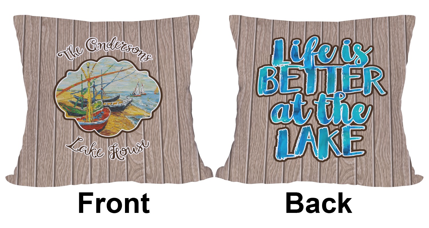 For our coordinating designs, we used the wooden planks with water color filled words on them i.e. "Life is Better at the Lake" and "Better to Wake at the Lake". We think it turned out to be an elegant design that would nicely complement the decor of a lake house.