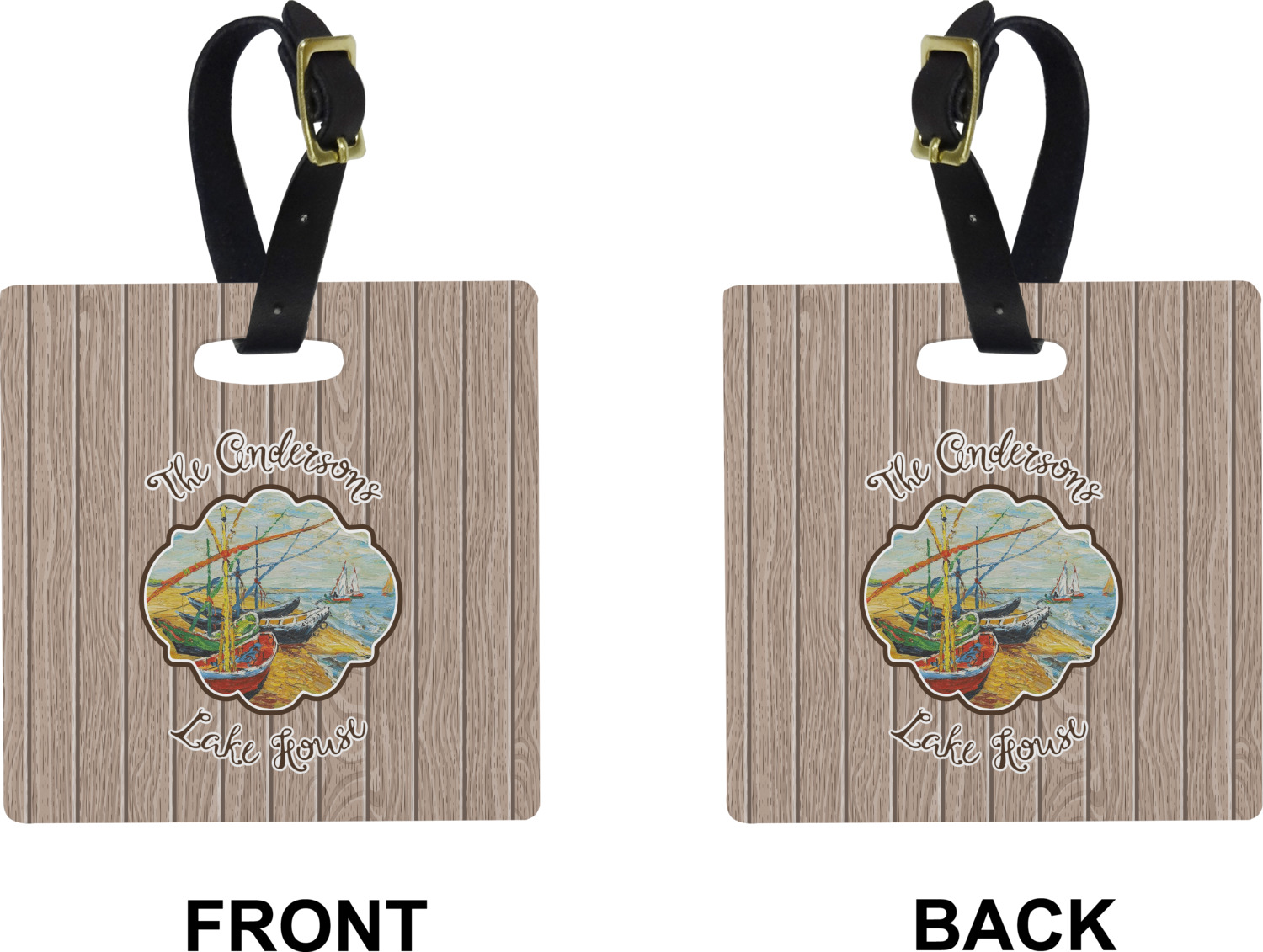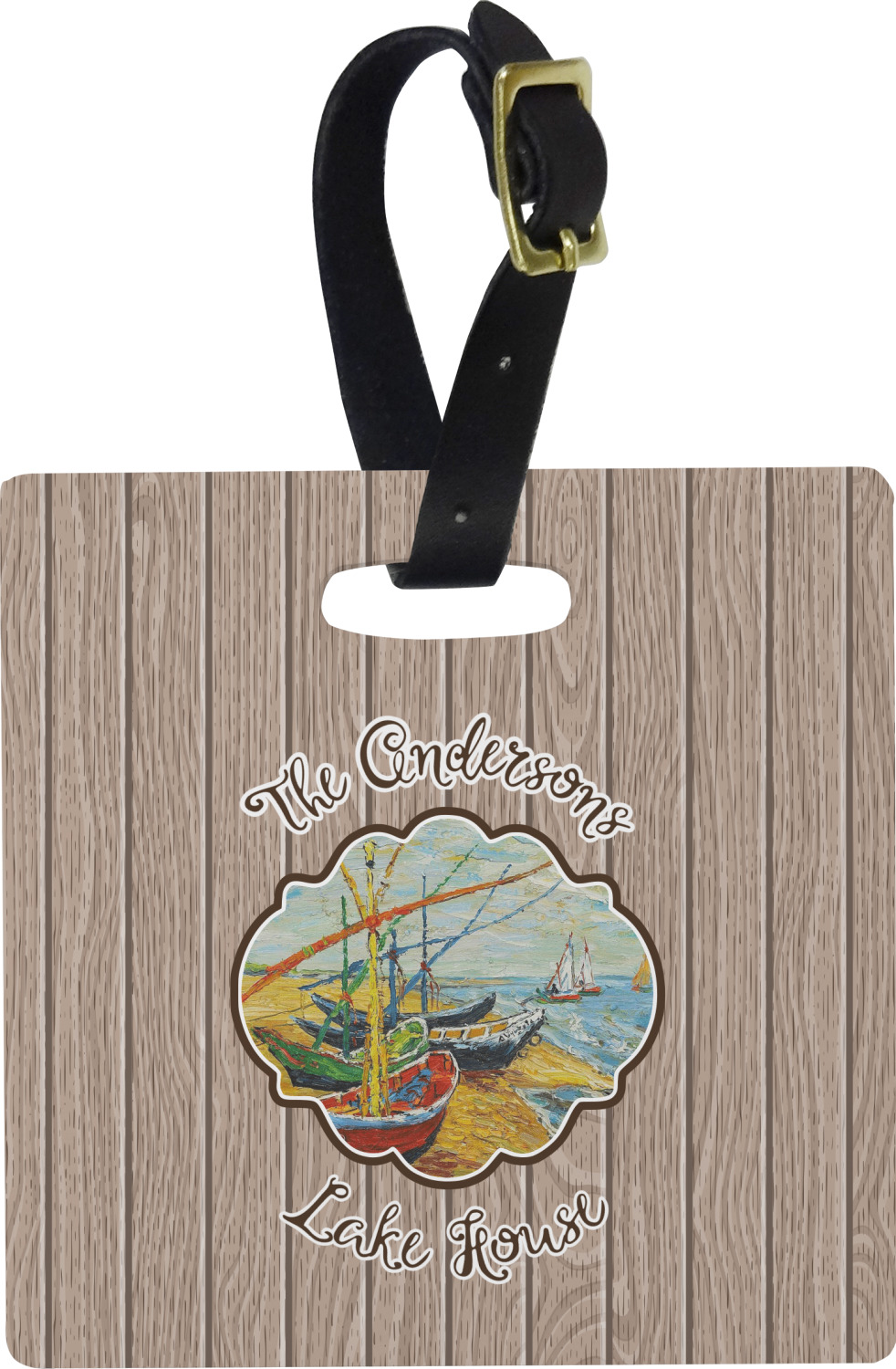 These personalized bag tags are sold in a variety of shapes, so that you may find the product that meets your vision exactly. We sell a round luggage tag, which measures at approximately 4" x 4". Our square luggage tag is about 3.5" x 3.5", while our rectangular version is 2.75" x 4 ".