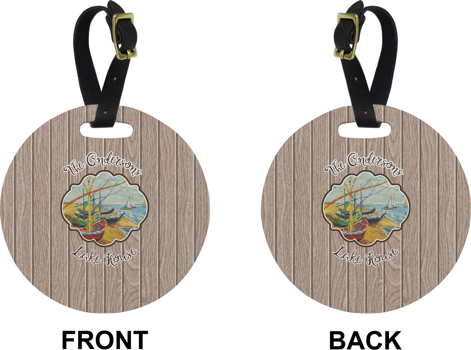 These personalized bag tags are sold in a variety of shapes, so that you may find the product that meets your vision exactly. We sell a round luggage tag, which measures at approximately 4" x 4". Our square luggage tag is about 3.5" x 3.5", while our rectangular version is 2.75" x 4 ".
