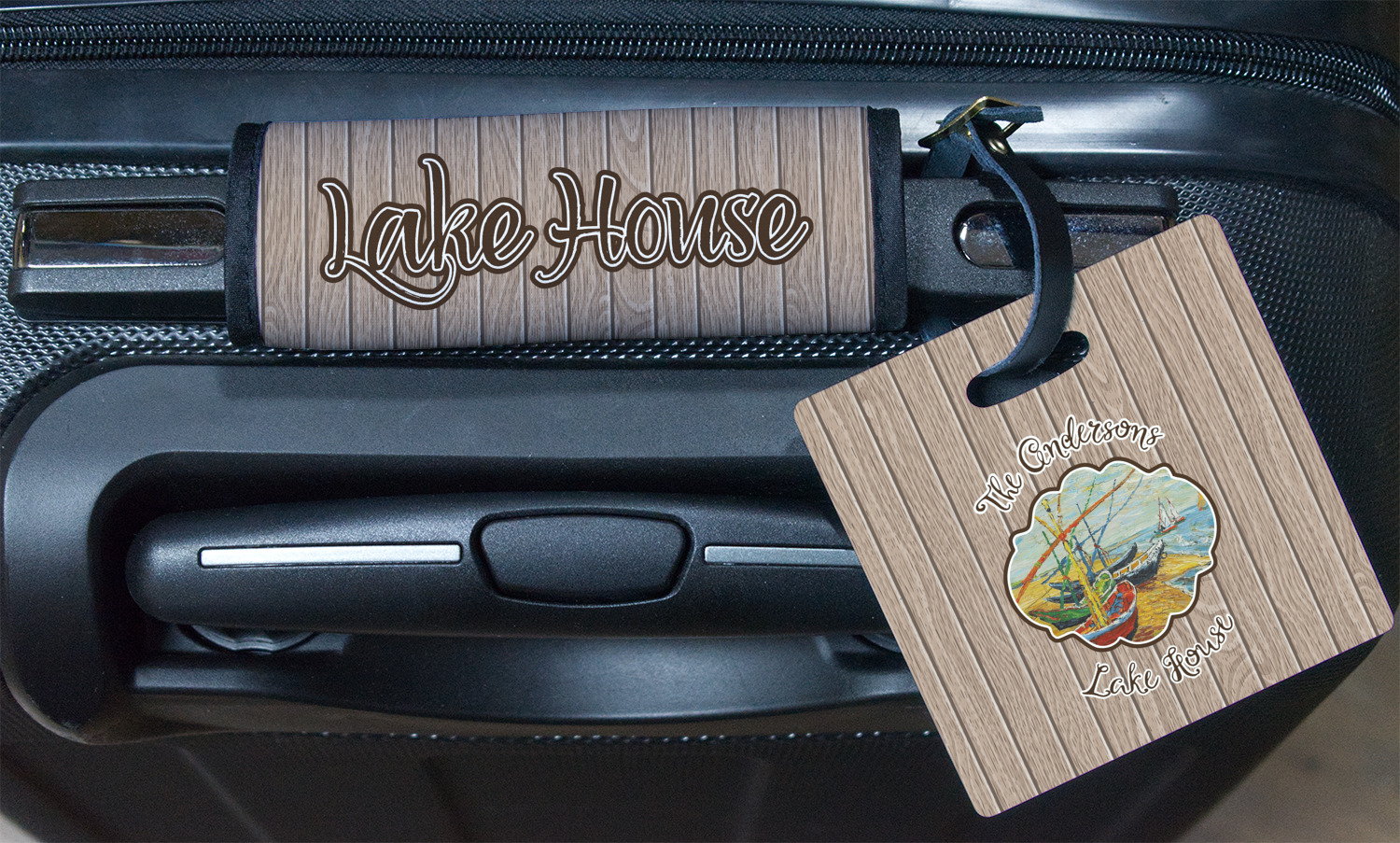 Our Lake House design is a combination of classic and chic elements. For our classic element we used Fishing Boats on the Beach by Claude Monet for our center graphic; and for our chic element we used our wooden planks pattern for the background. We choose a neutral sand color for our planks - they can be any color!