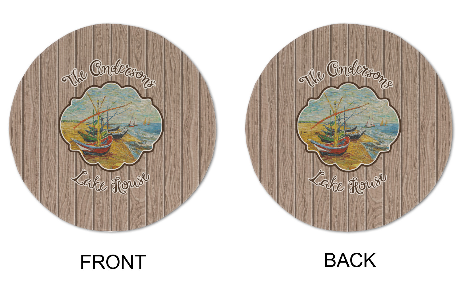 Our Lake House design is a combination of classic and chic elements. For our classic element we used Fishing Boats on the Beach by Claude Monet for our center graphic; and for our chic element we used our wooden planks pattern for the background. We choose a neutral sand color for our planks - they can be any color!