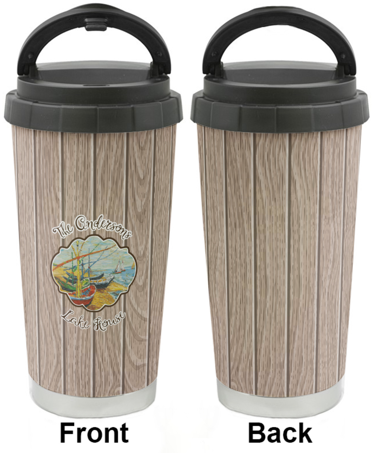 This sleek and tapered 16 oz stainless steel travel cup is a perfect fit in the hand. With the strip of visible stainless steel on the bottom, you'll be feeling classy!