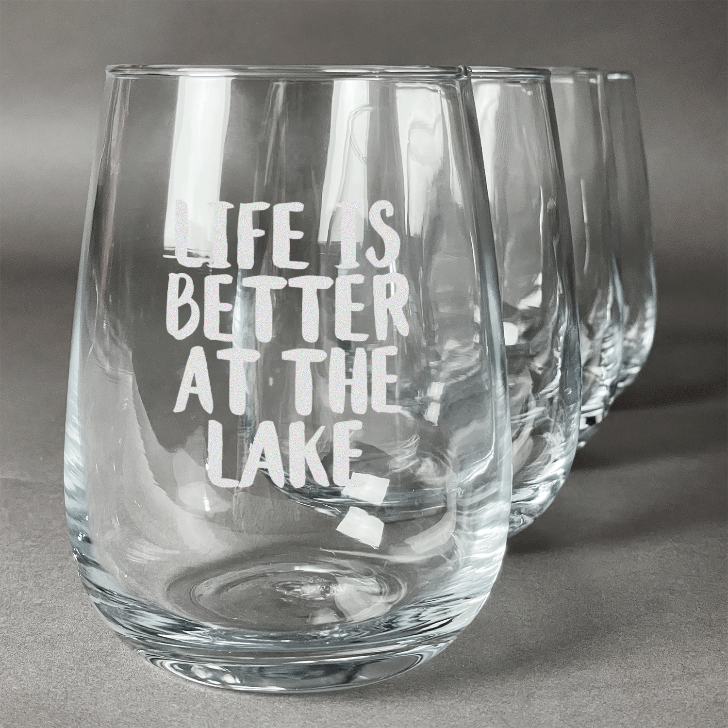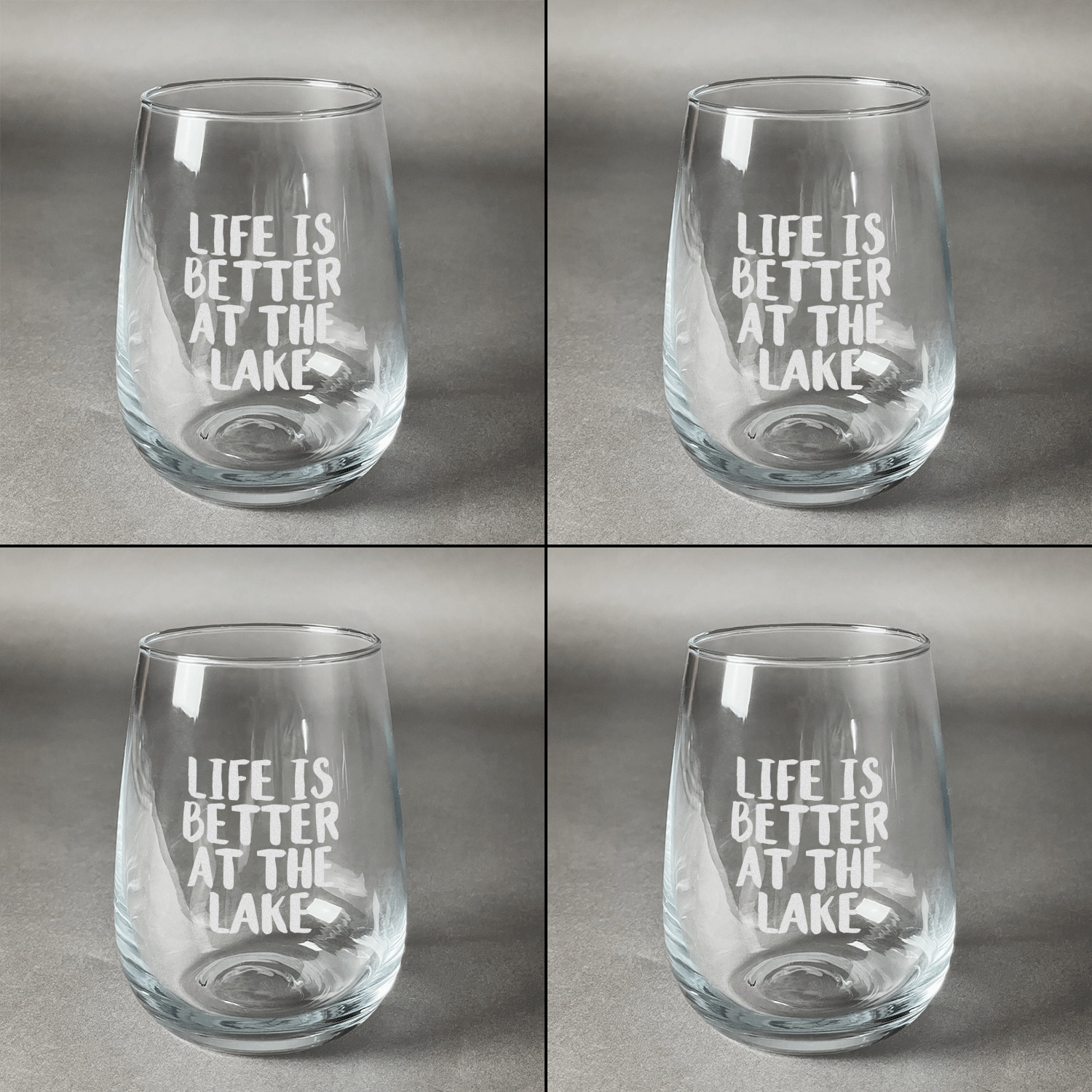 Coastal / Beach Style Designs for Stemless Wine Glasses - Laser Engraved - Set of 4