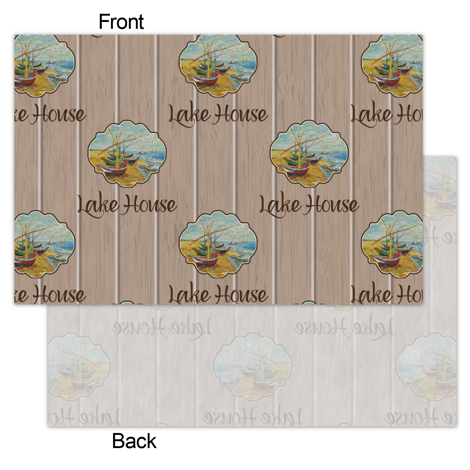 Our Lake House design is a combination of classic and chic elements. For our classic element we used Fishing Boats on the Beach by Claude Monet for our center graphic; and for our chic element we used our wooden planks pattern for the background. We choose a neutral sand color for our planks - they can be any color!