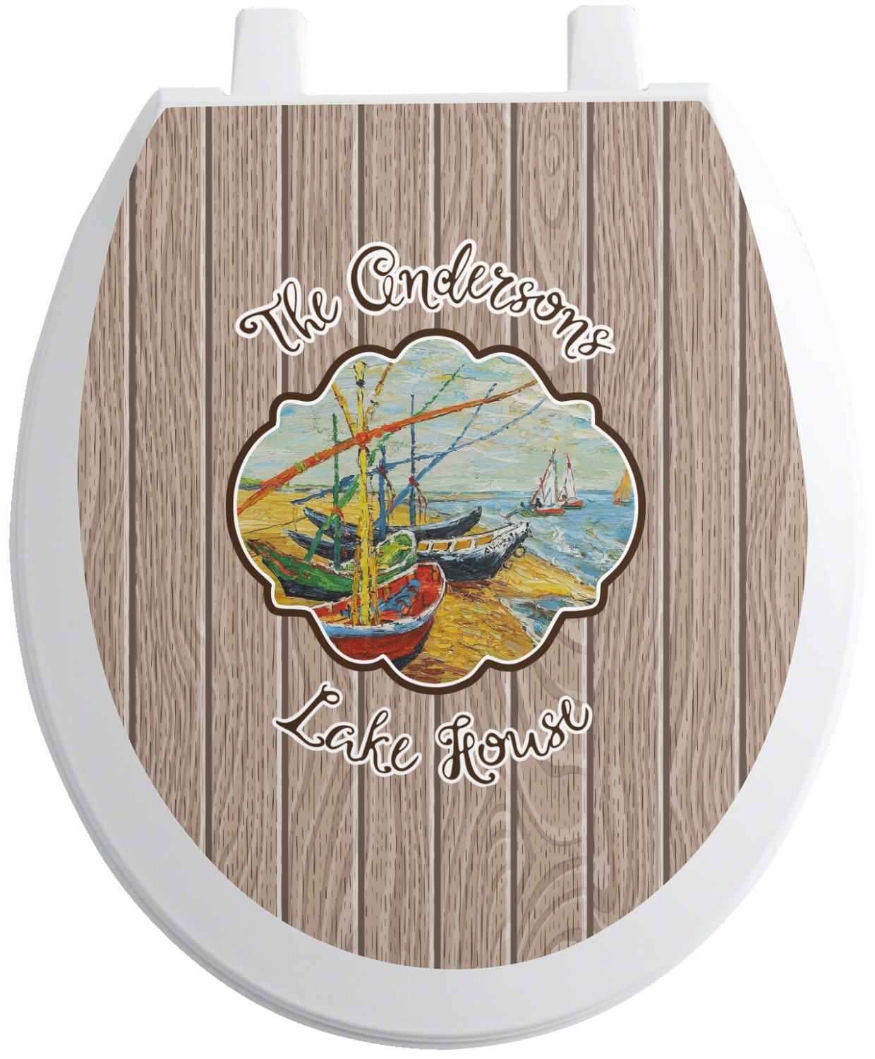 Our Lake House design is a combination of classic and chic elements. For our classic element we used Fishing Boats on the Beach by Claude Monet for our center graphic; and for our chic element we used our wooden planks pattern for the background. We choose a neutral sand color for our planks - they can be any color!