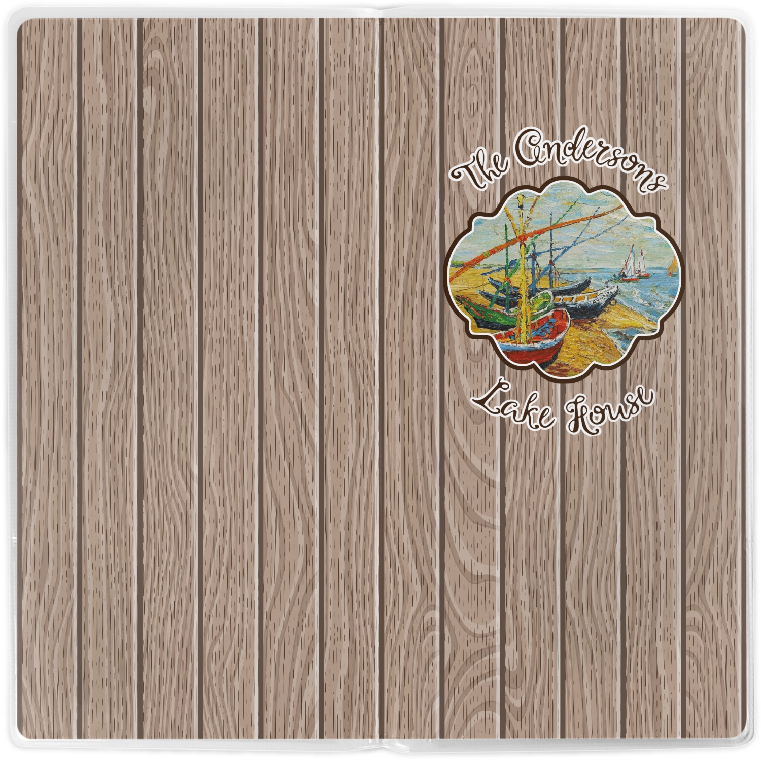 Our Lake House design is a combination of classic and chic elements. For our classic element we used Fishing Boats on the Beach by Claude Monet for our center graphic; and for our chic element we used our wooden planks pattern for the background. We choose a neutral sand color for our planks - they can be any color!