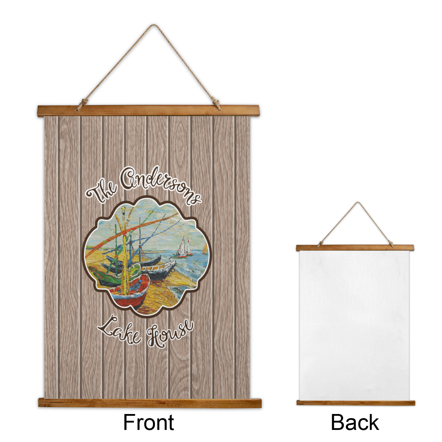 Our Lake House design is a combination of classic and chic elements. For our classic element we used Fishing Boats on the Beach by Claude Monet for our center graphic; and for our chic element we used our wooden planks pattern for the background. We choose a neutral sand color for our planks - they can be any color!