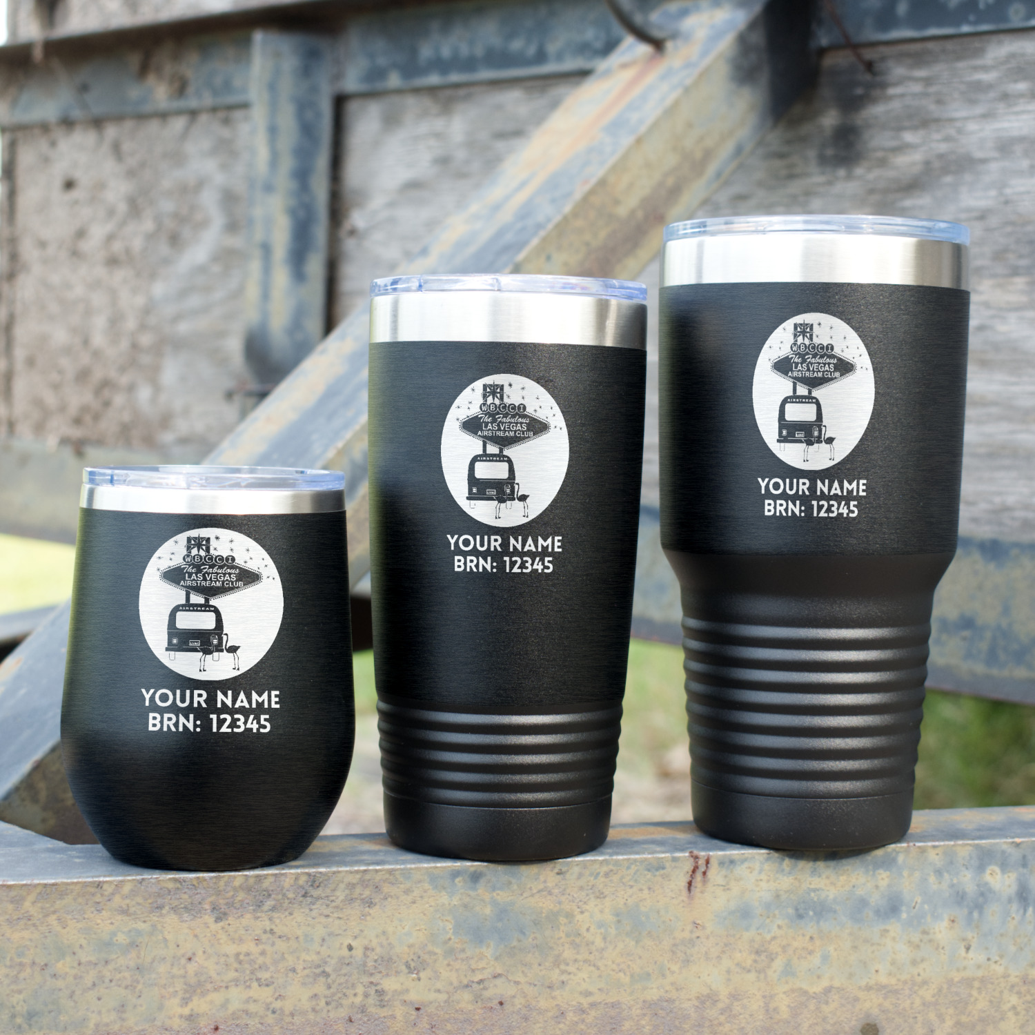 With the 5 colors - Black, Navy, Red, Pink and Coral, you are sure to find a cup to fit your personality. You can chose to engrave on the front or the front and back of the cup. Use our design studio to design your own cup and we laser engrave it for you.