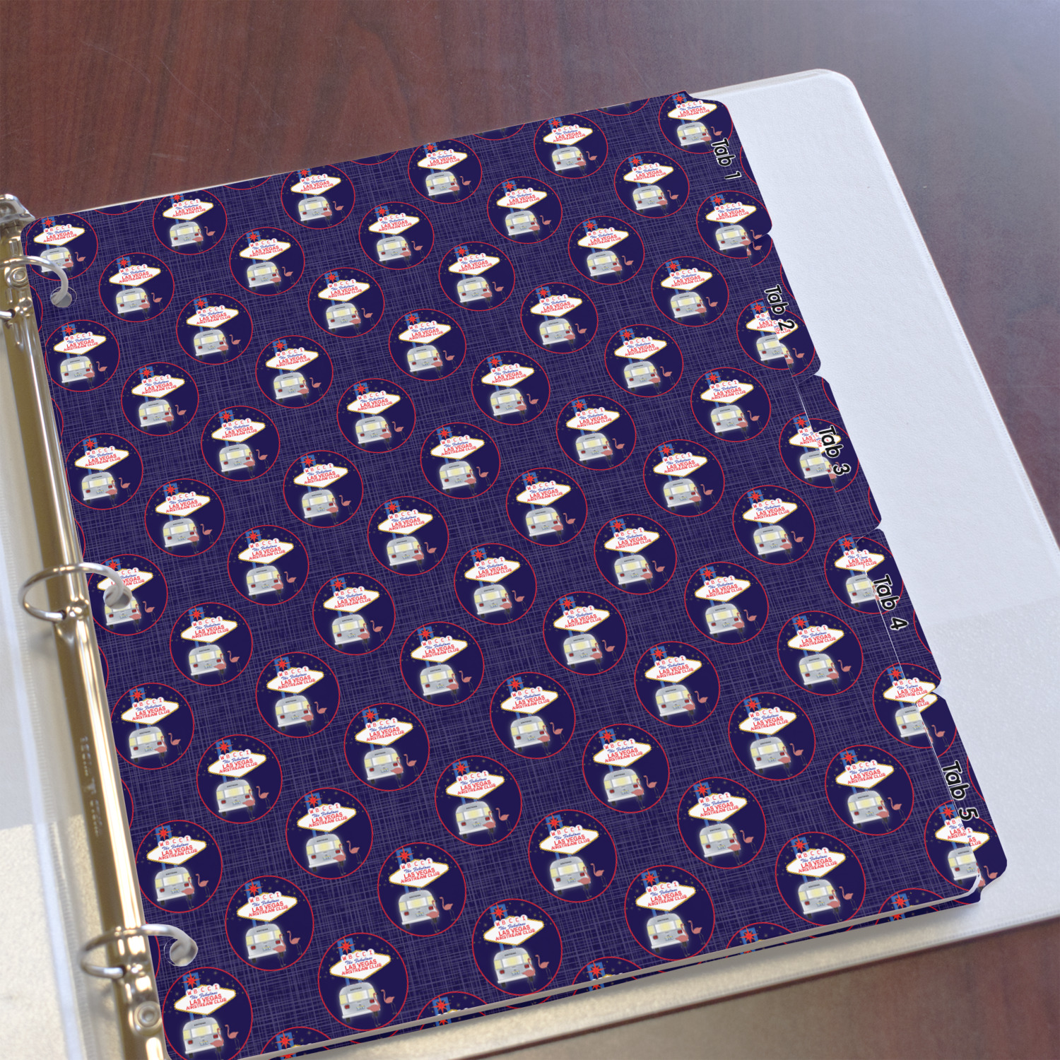 What better way to outfit your new custom personalized binder than a set of custom tab dividers? These can be made to compliment your binder design to take it to the next level!