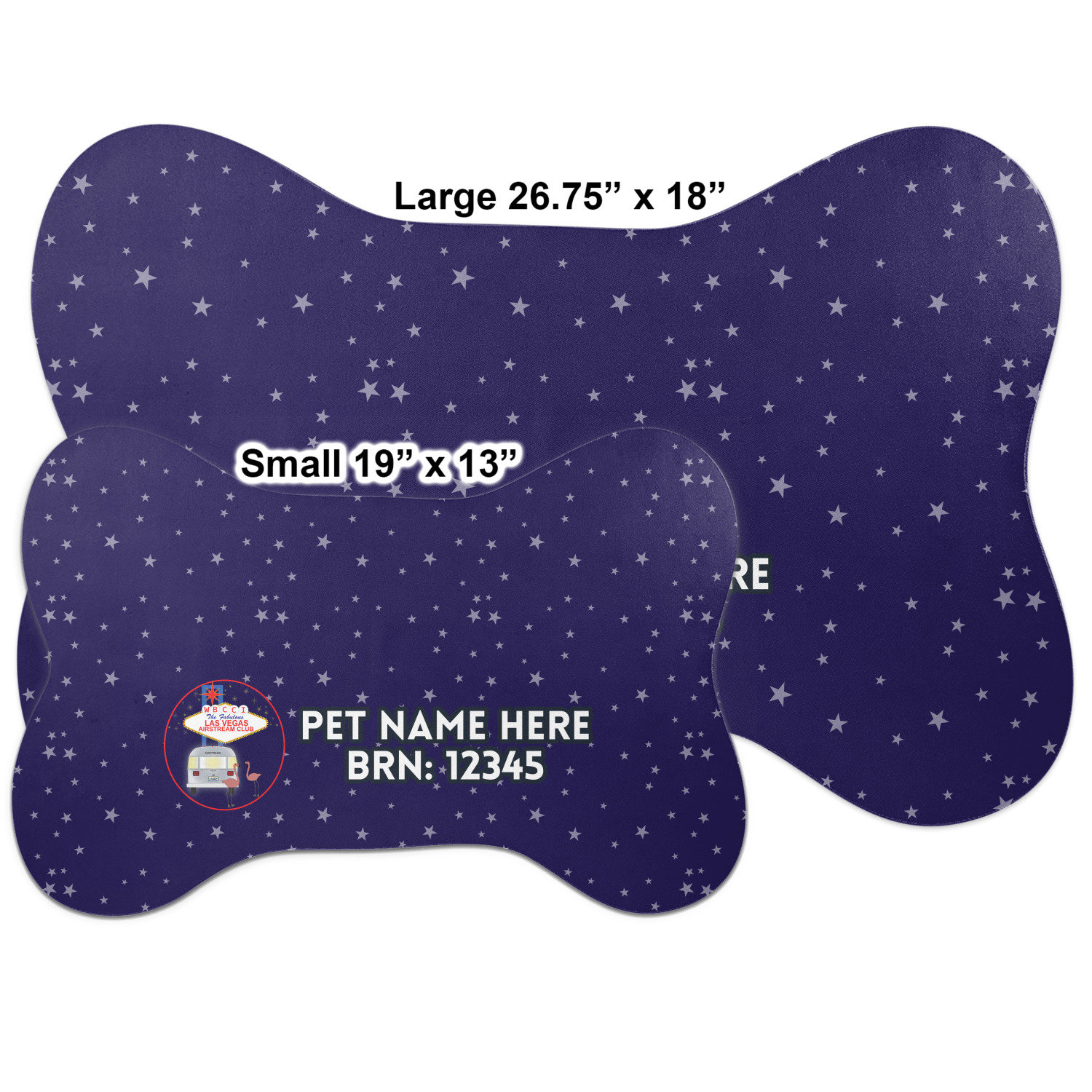 The bone-shaped dog bowl mat is the perfect way to add a touch of personality to your dog's eating area! Dogs make inevitable messes, especially when they eat and drink. Save the integrity of your floors and the time spent cleaning them by purchasing a personalized mat that catches spills!
