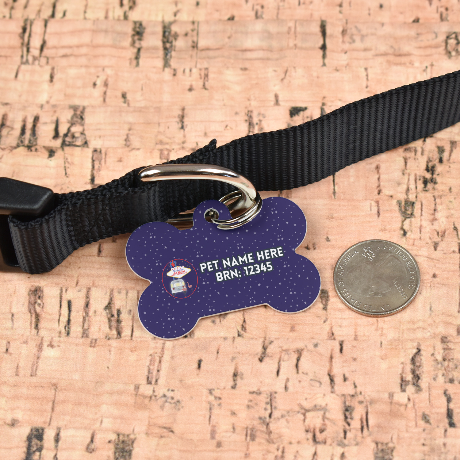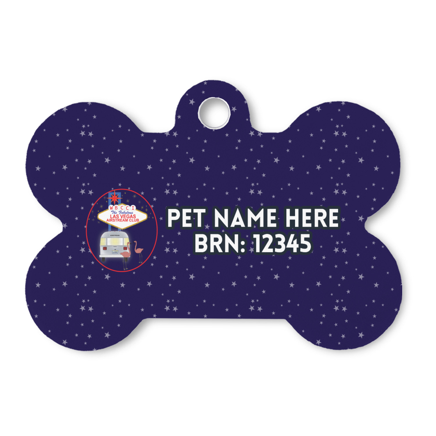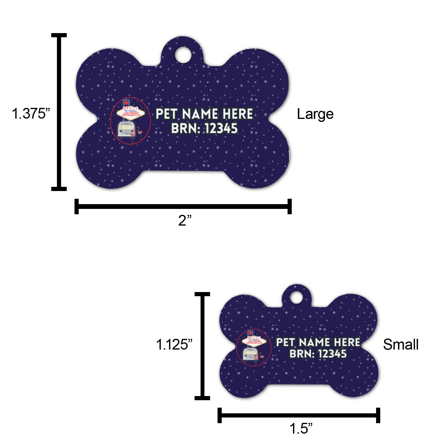 The large bone shaped dog tag measures 2" wide X 1 " tall.