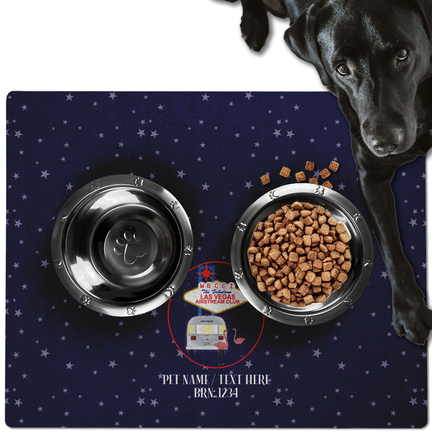 This dog bowl mat, fabricated from polyester, proudly displays your customized design on its top, while its bottom includes a non-slip rubber. This feature allows it to remain firmly in place, even when your dog spills his/her water. With 3 sizes available (18" x 12", 24" x 18", 30" x 24"), the pet food mat has ample space for both a food and water bowl for any sized dogs. Though specified for dogs' use, these mats are also a splendid option for cats.