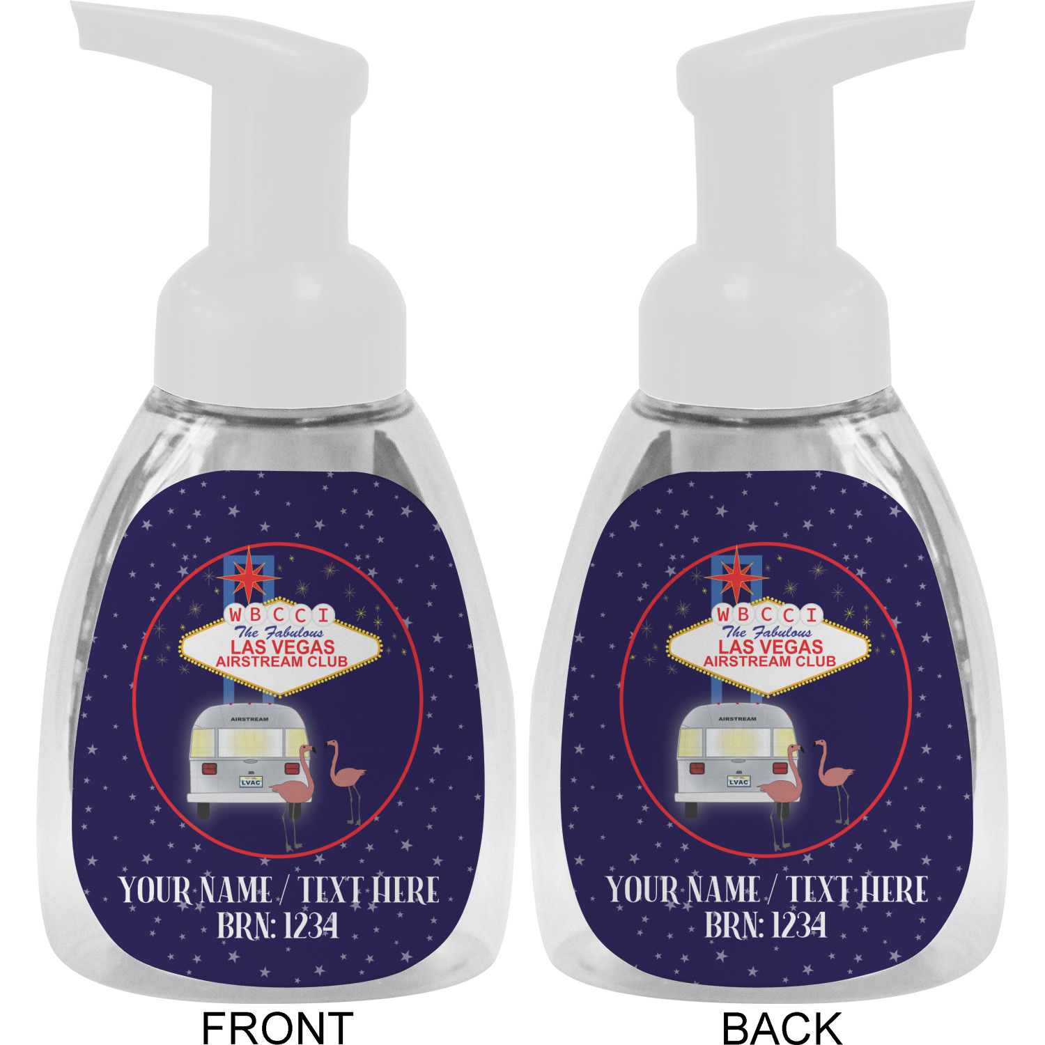 This soap dispenser is made of a robust plastic and has a clear base. The included soap pump is available in black or white color. This dispenser is 6.5 inches tall, 3 inches wide, and 2 inches deep. We display your customized designs on the front and back sides of these foaming hand soap dispensers.