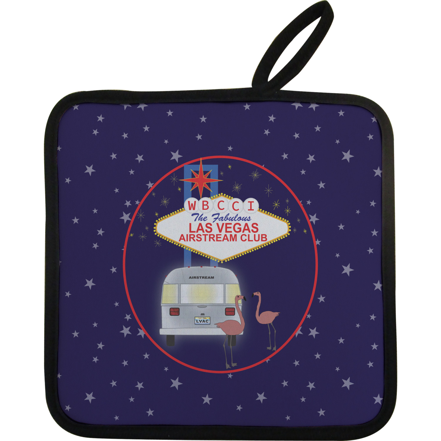 Along with our heat resistant gloves, we also carry personalized pot holders. These pot holders also feature a neoprene front that displays your personalization, and a textured, rubber backing for a sturdy grip. The two materials are connected with a sleek, black trim, and the hot pot holder also includes an attached loop for hanging and storage. You can purchase a kitchen pot holder by itself, or alongside a right or left oven mitt, depending on your needs. The pot holder itself is approximately 8.75 inches by 8.75 inches and 0.25 inches tall.