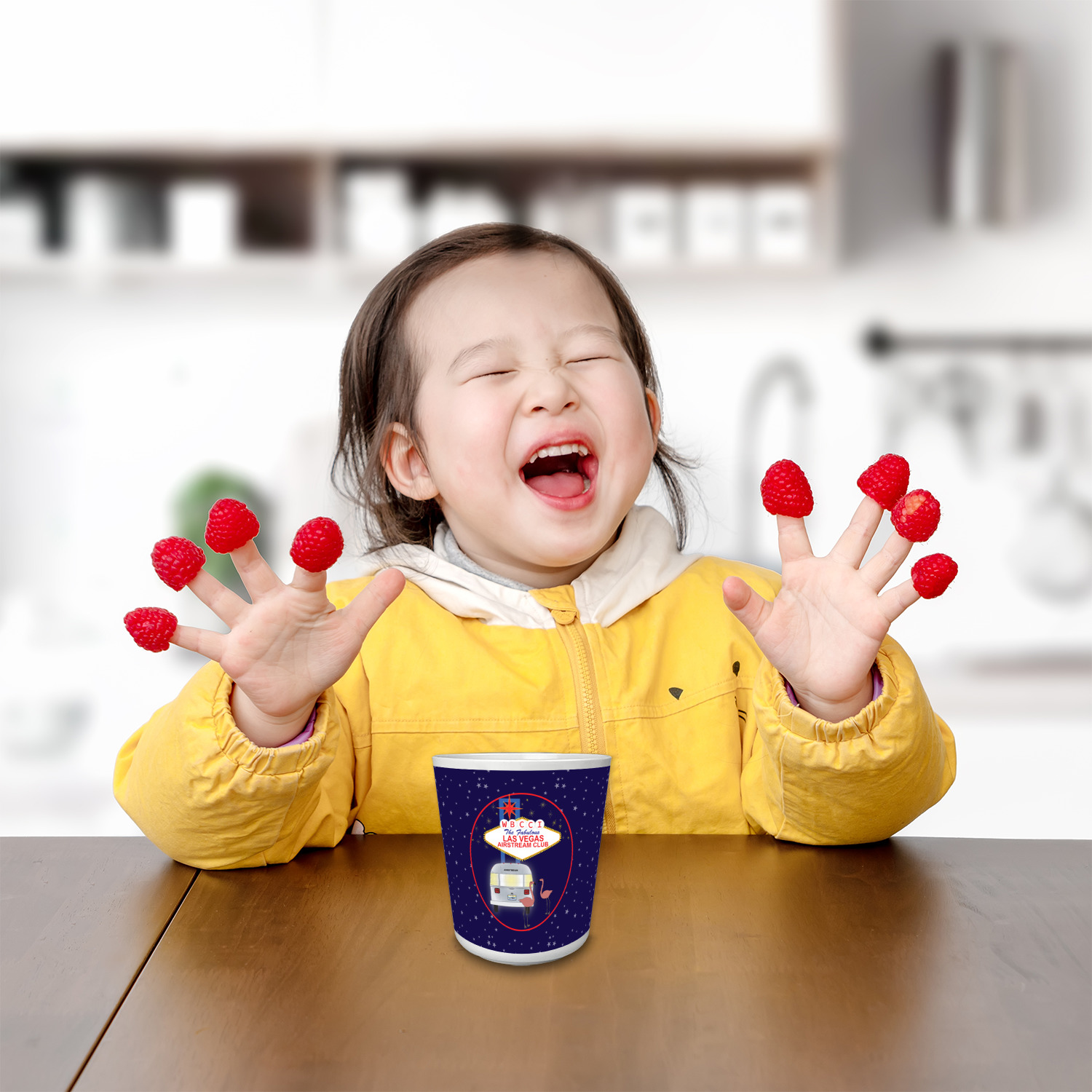 Made from a durable plastic, these tumbler cups are strong enough to withstand daily use and are perfect for young children. Each of these personalized plastic cups holds 6 ounces and measure at approximately 3" x 3" x 3.25". Place them in the bathroom as a rinsing cup, or give them to your kids during mealtimes. These 6 oz. plastic cups are BPA free, microwave and dishwasher safe, for your convenience. Your personalized design is displayed across the entire outside of this cup, while the inside is white in color to make your customization really stand out.