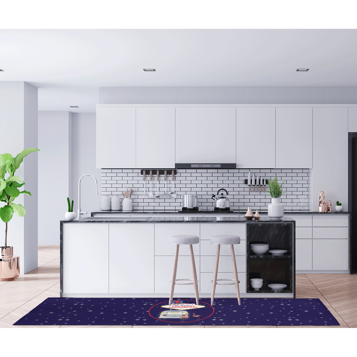 If you want to design it for your hallway - a vertical design is the perfect fit. If designing for to go in front of your kitchen island a horizontal design would suit you best! In our design system you can rotate the design either way to get the product you want.