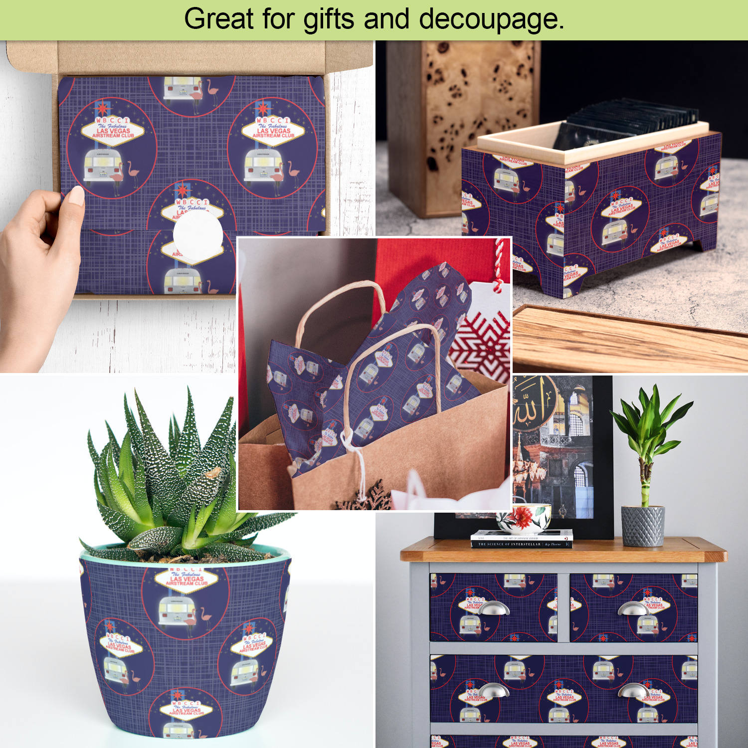 Our tissue paper sheets are also perfect for decoupage i.e. the art of gluing paper on ordinary objects to decorate them.