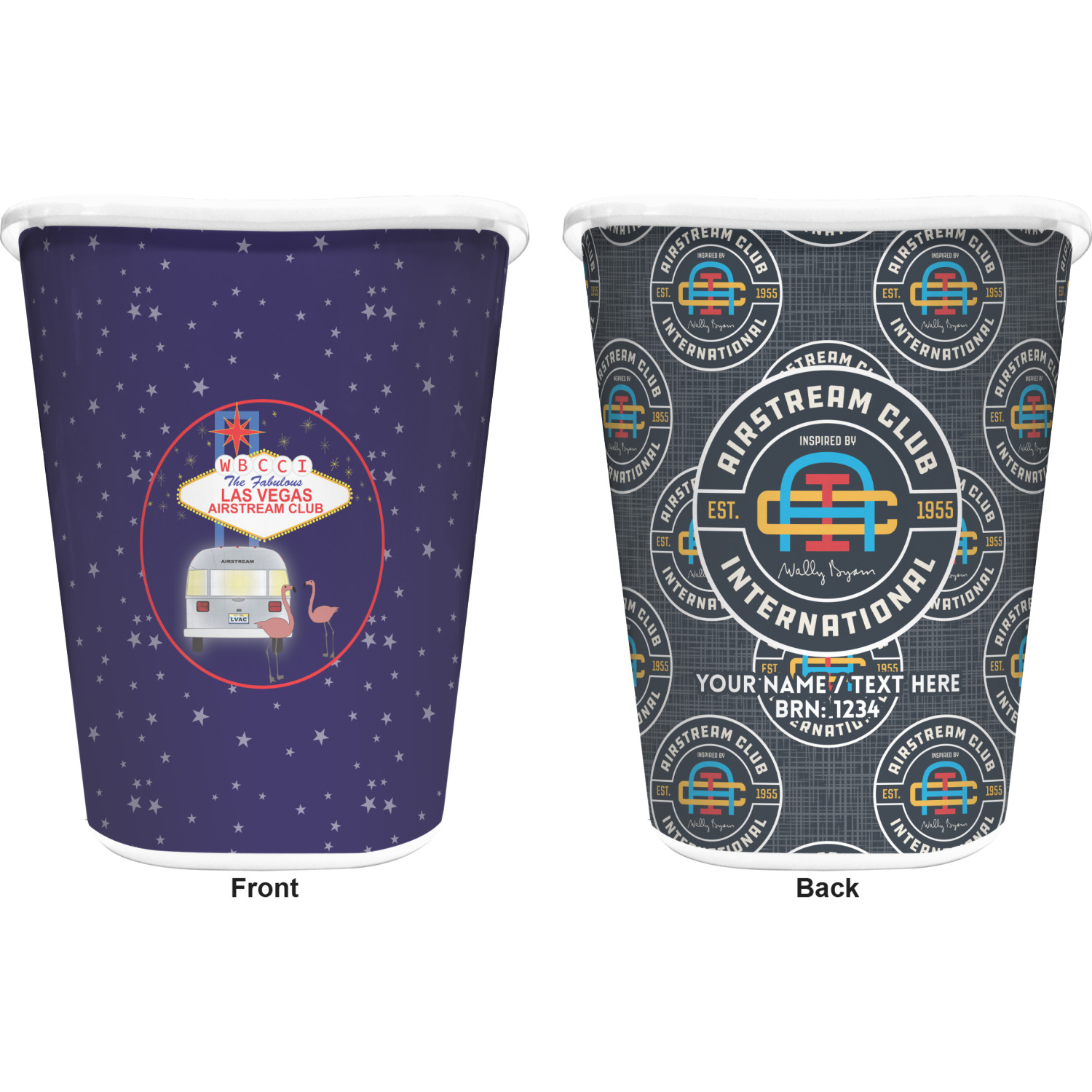 You can choose to purchase these decorative wastebaskets in either a white or a black color that will show on the base and the upper rim. Your customization is printed on a high-gloss, fine-quality vinyl adhesive, and you can choose to either have this adhesive applied to one side only or to both sides. As such, this plastic wastebasket can be single-sided or double-sided, depending on your creative vision. Your customization is printed using durable inks, making the design waterproof and resistant to fading over time.