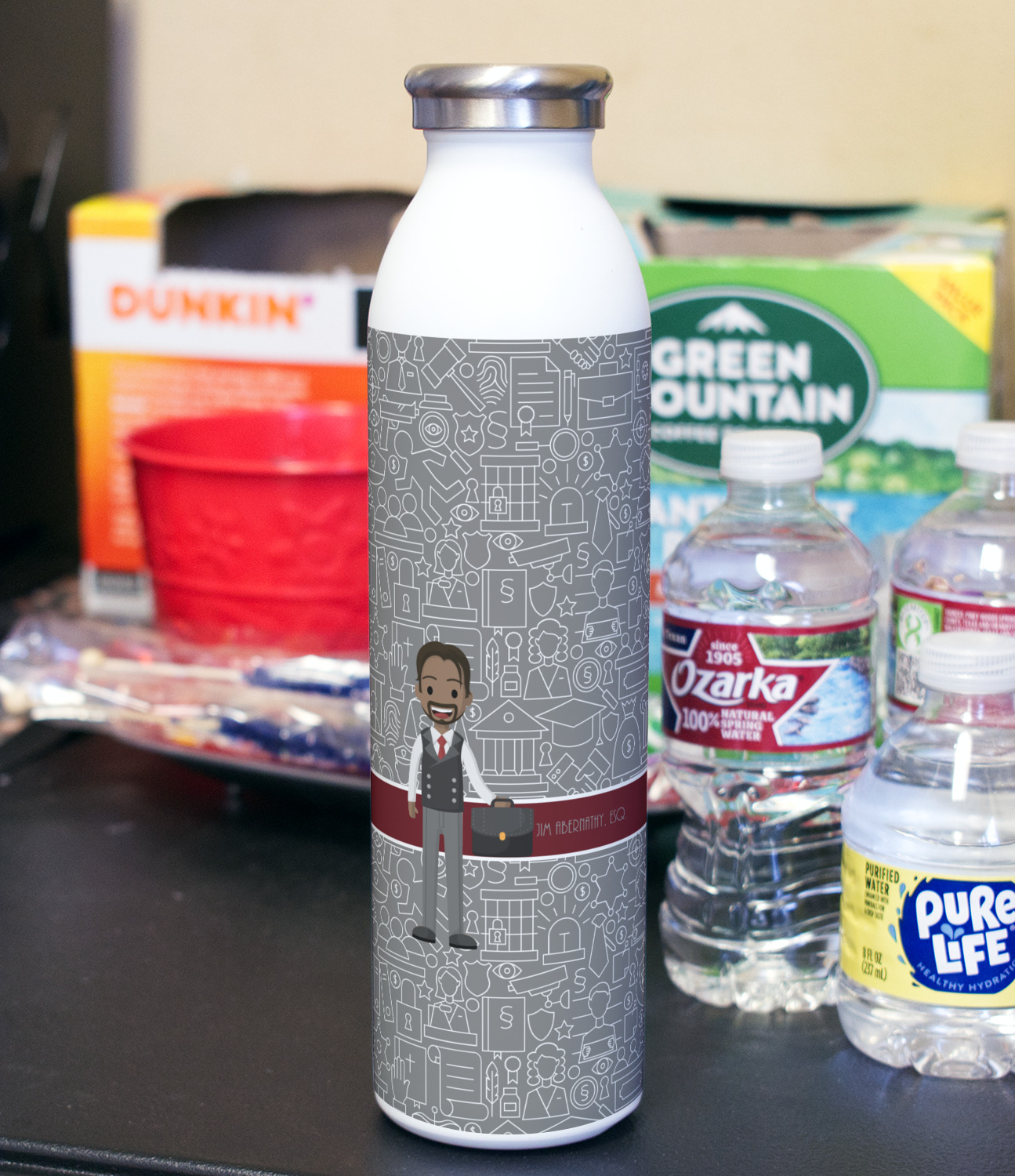 Design your bottle and we will print your design with a UV stable ink so it will not fade over time. After printing the design we apply a clear coat over the print to ensure its durability will stand up to rough every day use.