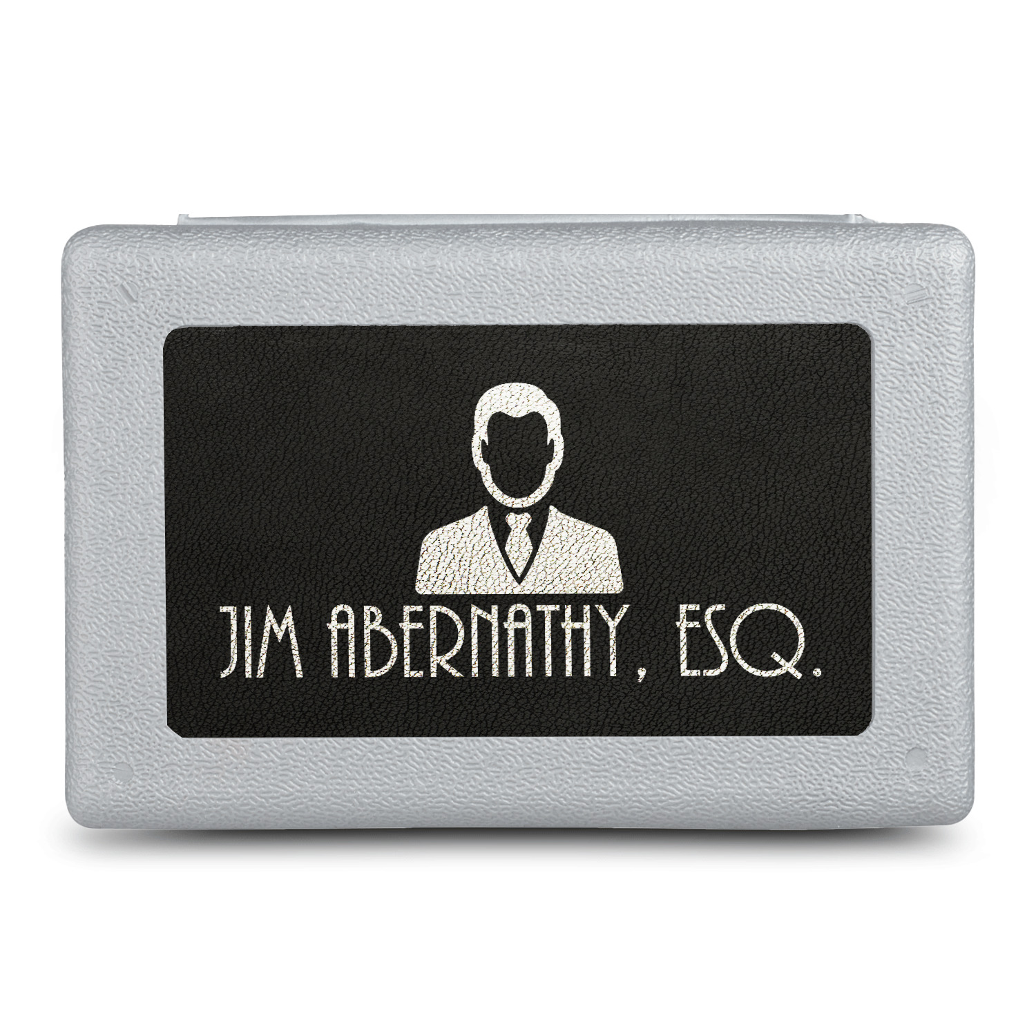 The background has fun attorney / law icons and is grey and white. The main feature of this design is a well dressed avatar of your choosing! You can upload your own or customize ours; you are able to customize the skin tone and hair color to fit what you like! There are also several different avatars / characters in the system to choose from with different hair and body types. Easily put your name or text right next to your avatar to finish off your awesome design.