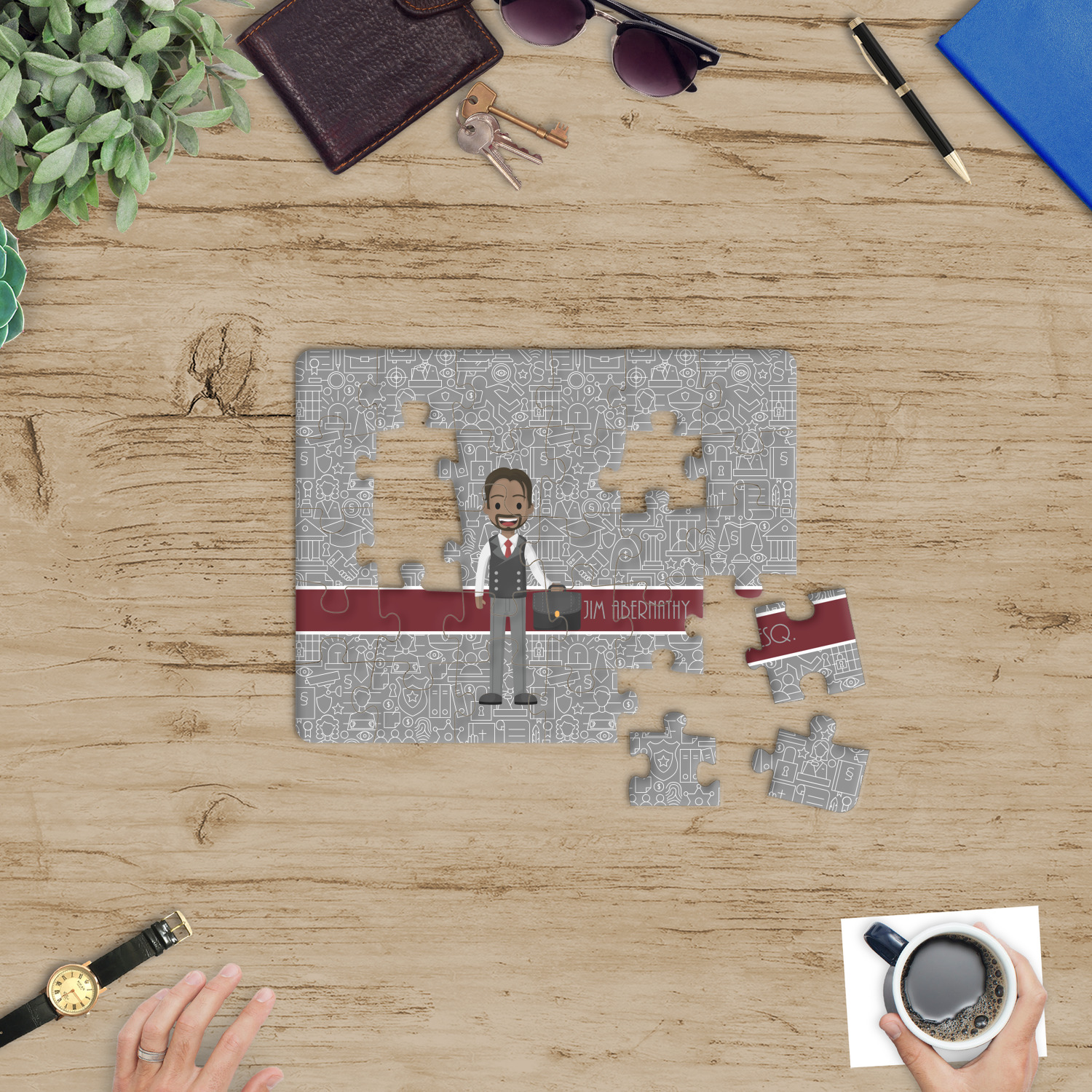 Depending on the look you are trying to achieve, you can add; a thematic pattern or background, with a photo in a frame and text or personalization to your puzzle. Basically if you can imagine it, you can design it!